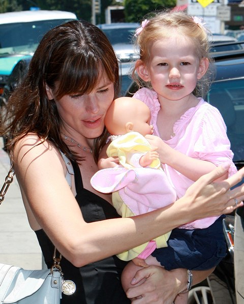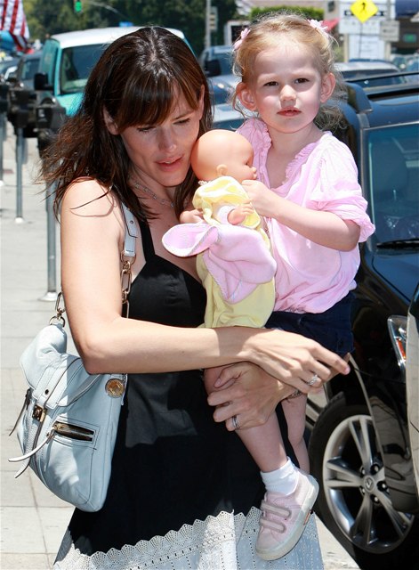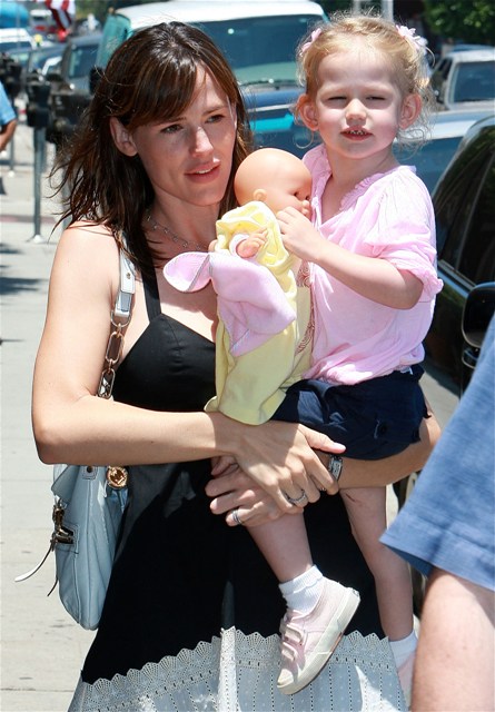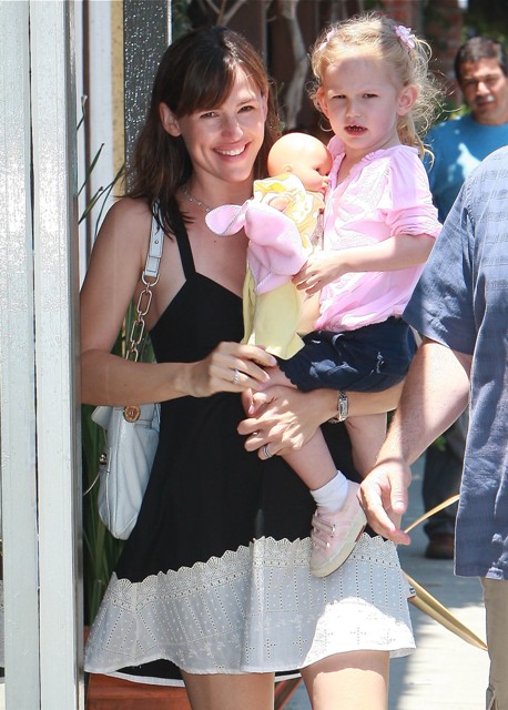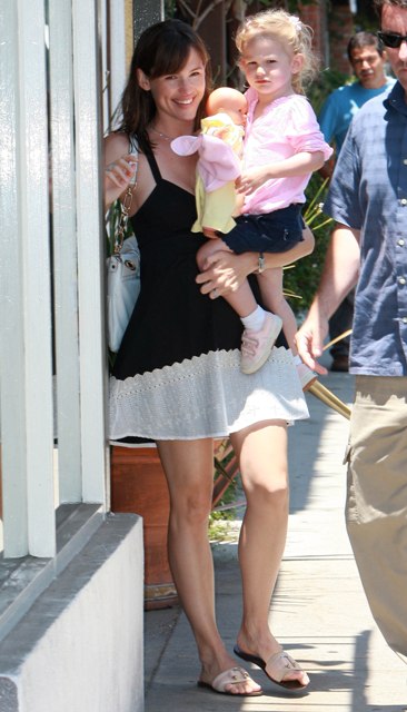 Taupe and Violet out and about today… and is it just me or is Jennifer Garner a little bigger ‘round the bust area? Jennifer Garner isn’t known for being chesty. These photos should give the bump nuts even more reason to flap, non?