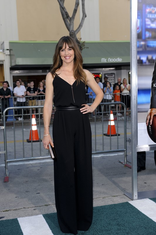 This might be my favourite Jennifer Garner outfit of all time. The jumpsuit is dope. The leather belt is perfect. But man I wish I could take the palm of my hand and push that fringe off her face. Let us see your face! It’s such a nice face!