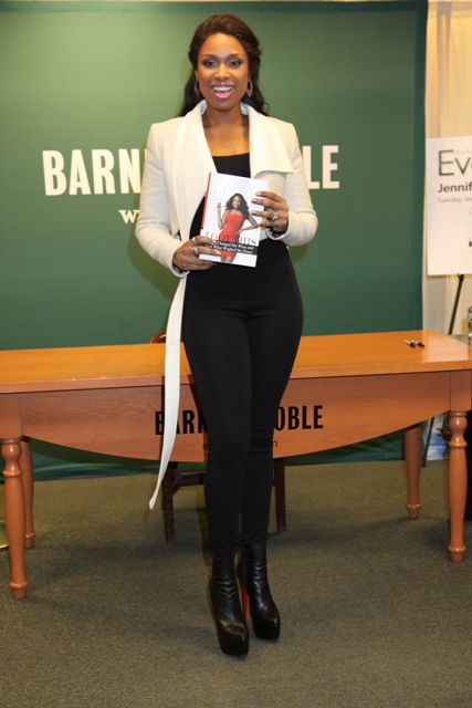 Jennifer Hudson is promoting her new book I Got This: How I Lost What Weighed Me Down And Found Myself. She was at her book signing in New York today showing off the body in fitted black pants under an interesting white coat with a wrap belt (?) hanging down on one side. You like it? I can’t decide. The construction looks great. I love the cut. But then there’s that strap just dangling there and I don’t know if that’s a distraction or an enhancement.