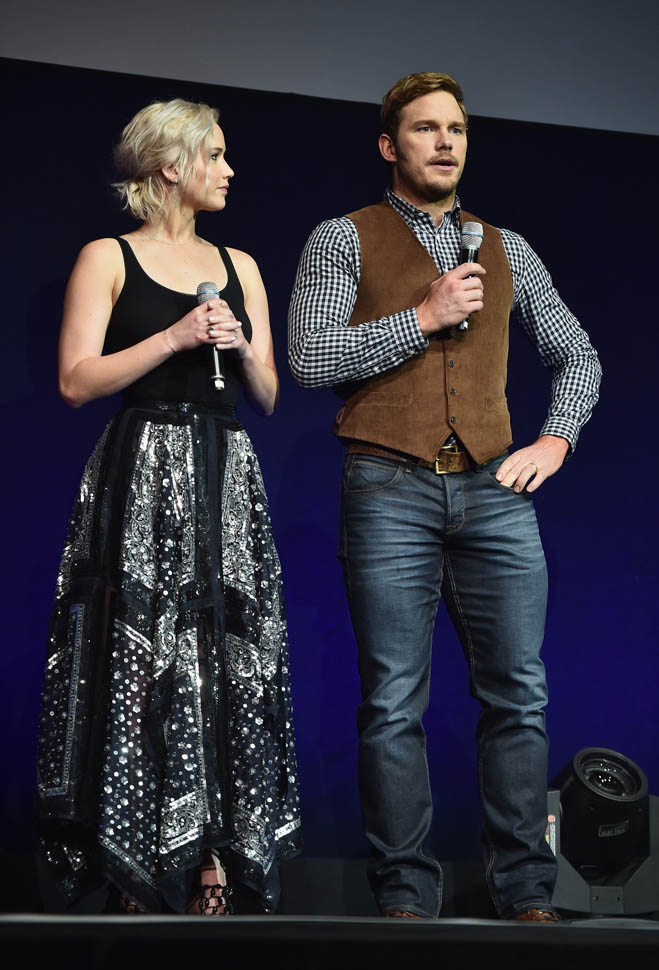 Hollywood’s current equivalent of Prom Queen and King. And they were in Vegas for CinemaCon last night to preview Passengers for theatre owners – as if they needed any convincing. I mean, really, all you have to say is Jennifer Lawrence + Chris Pratt.