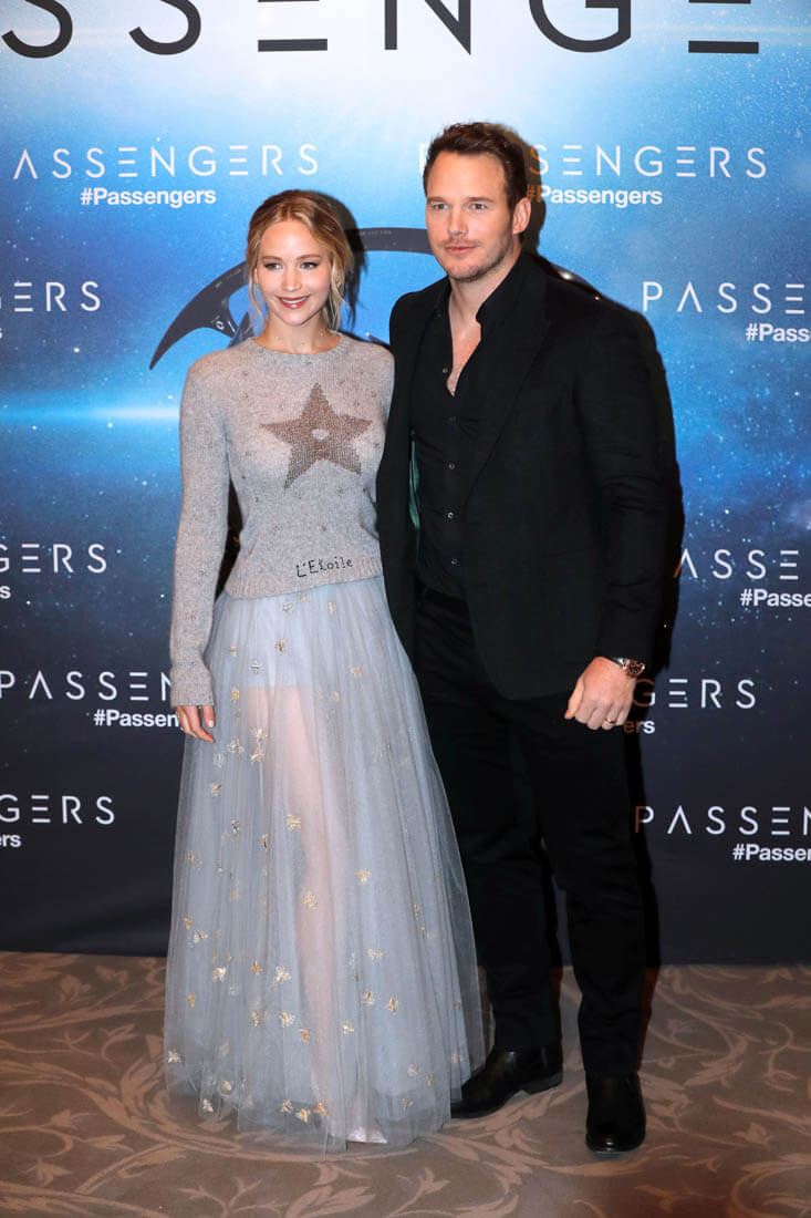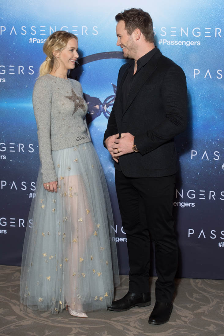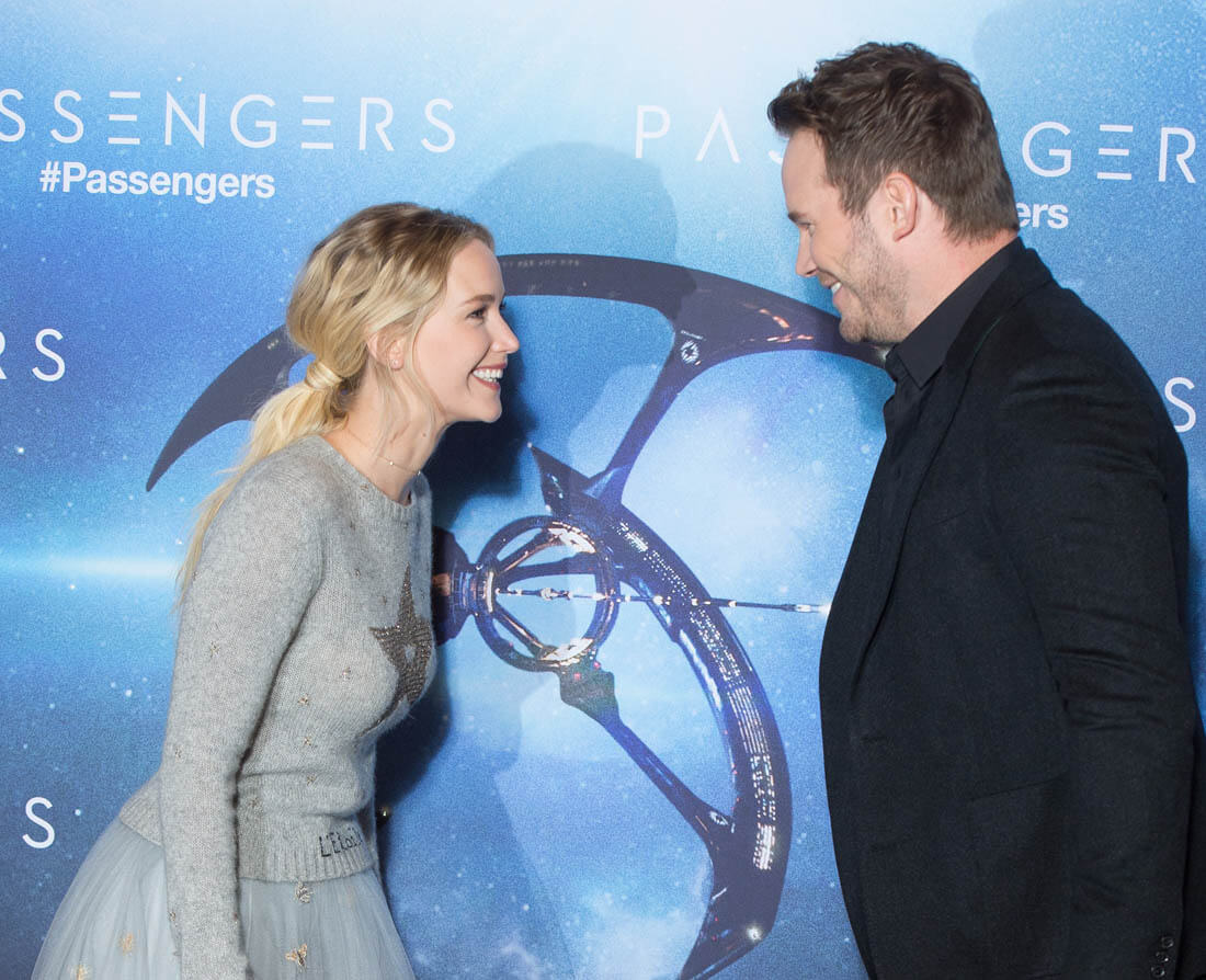 Passengers, or as I like to call it, The Movie Star Survival Test, is coming out at Christmas. Now that Thanksgiving is over, Jennifer Lawrence and Chris Pratt are on the hard sell, and they’ll be pushing the movie as charmingly and charismatically as they can until just before the holiday break. Last I wrote about how Passengers is a good test of the viability of the Movie Star – if it’s good. It’s been hard to tell though from the previews. But also, the movie is hard to preview. As Angie Han observed this morning, “it’s starting to look like Sony has no idea how to market this movie”. The movie is about two people on a migration spaceship who weren’t supposed to wake up for another 90 years. They hang out, fall in love, and then some crazy sh-t goes wrong. So it’s kinda Gravity and kinda Before Sunrise. And maybe Alien? That might be confusing to the audience making a decision about what to go see when they want to get away from their family on Boxing Day. So… now that we have new pictures of Jennifer and Chris in Paris, a new clip and music video have just been released for Passengers. And what they’re clearly going for here is rom-com.