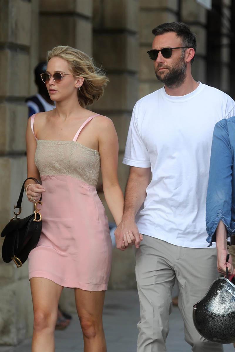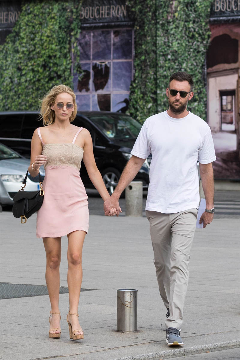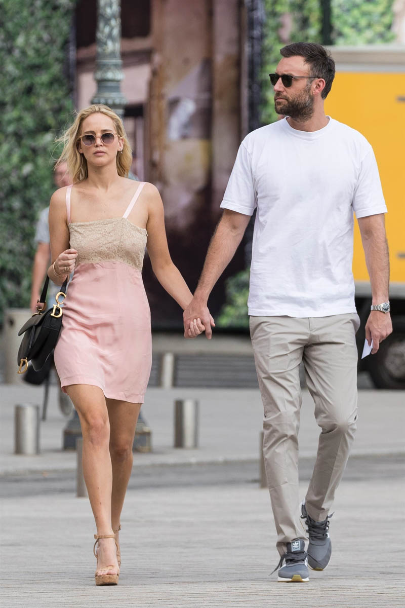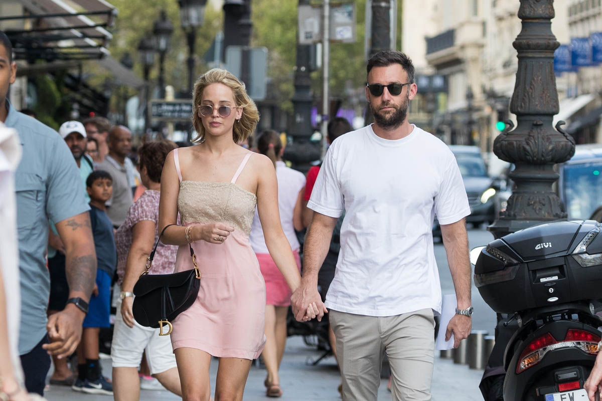 It was two months ago that we found out that Jennifer Lawrence was dating Cooke Maroney, an art dealer. Since then they’ve kept it pretty quiet. Until this week as they were papped hand in hand in Paris. This is what I always come back to with celebrities and relationships – the speed at which romances can develop because of their extra time and resources. Like, I’ve been out of the dating scene for a while but some things don’t change, right? You don’t typically go on a trip with someone until you’ve been together for a minute. And not just any trip… but Europe? Back in my day, the first holiday with your new situation was usually a beach thing. All-inclusive, obvs. Europe requires much more logistical planning. You need to vibe that sh-t out before you go to Europe. What if you’re into museums and they’re not? What if they’re into museums and you’re not? What if they want to sleep in and you’re more of a 7am get up and go and start walking around person? Beaches don’t require a schedule. Europe requires a schedule.