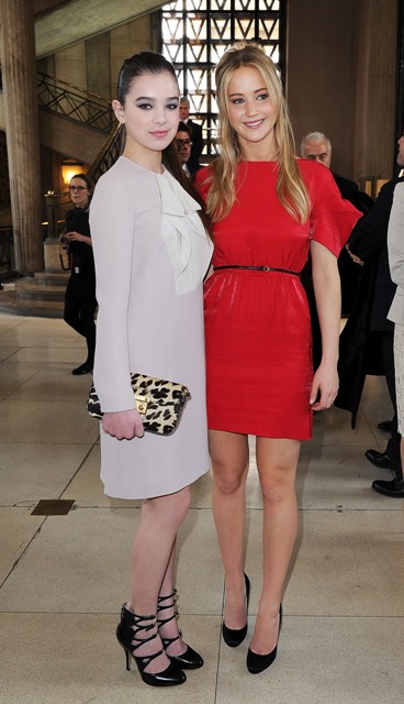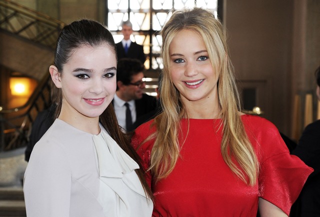 Today in Paris at Miu Miu, Jennifer Lawrence and Hailee Steinfeld, both vying for the role of Katniss in The Hunger Games, turned up for the show.