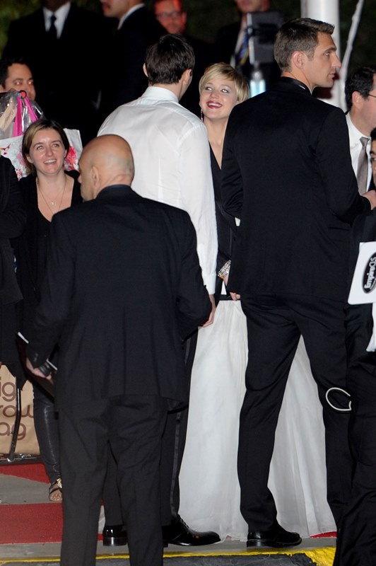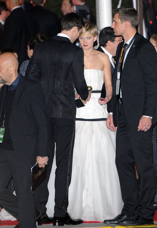 Many of you wrote to express irritation about Jennifer Lawrence. I guess that’s what happens when someone keeps winning – the backlash. Is it her…or is it us? Is she really that annoying or is it that we can’t stand to see someone so successful? It happens in sports too. When a team or a player just keeps dominating the game, people start to turn. Some of you are sick of Lawrence’s “schtick” – the clumsiness, the aw-shucksy-ness, the Jennifer Lawrence-ness of Jennifer Lawrence. I didn’t love her dress. (Duana called it her Worst of the Globes yesterday – click here for a refresher.) And I certainly didn’t love her assertion a couple of months ago that we shouldn’t get all critical on fashion porn because blah blah blah. BUT I still love Jennifer Lawrence. I don’t see Anne Hathaway in Jennifer Lawrence. I don’t see Taylor Swift in Jennifer Lawrence either. Maybe it’s because Jennifer Lawrence is so great at disappearing. She can go deep undercover when she needs to – and she wants to quite often – which tells me that she understands, she gets it. So no, I’m not giving up on her. Not yet. And I’m certainly not giving up on her now that she and Nicholas Hoult are making their way through their first award season together.
