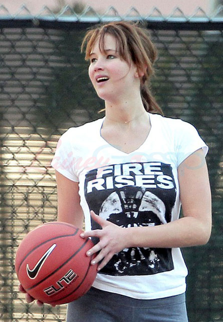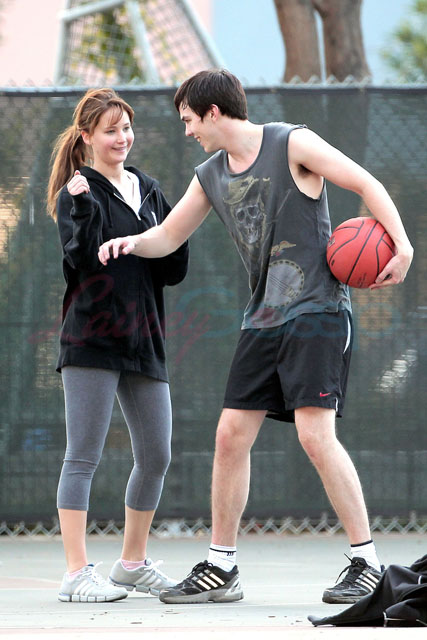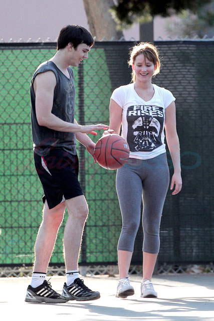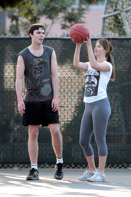 On Sunday the two were photographed together, not shopping, not behind sunglasses leaving lunch, not stumbling out of a club, not touching each other on the beach in bikinis but... shooting hoops. Adorable, right?