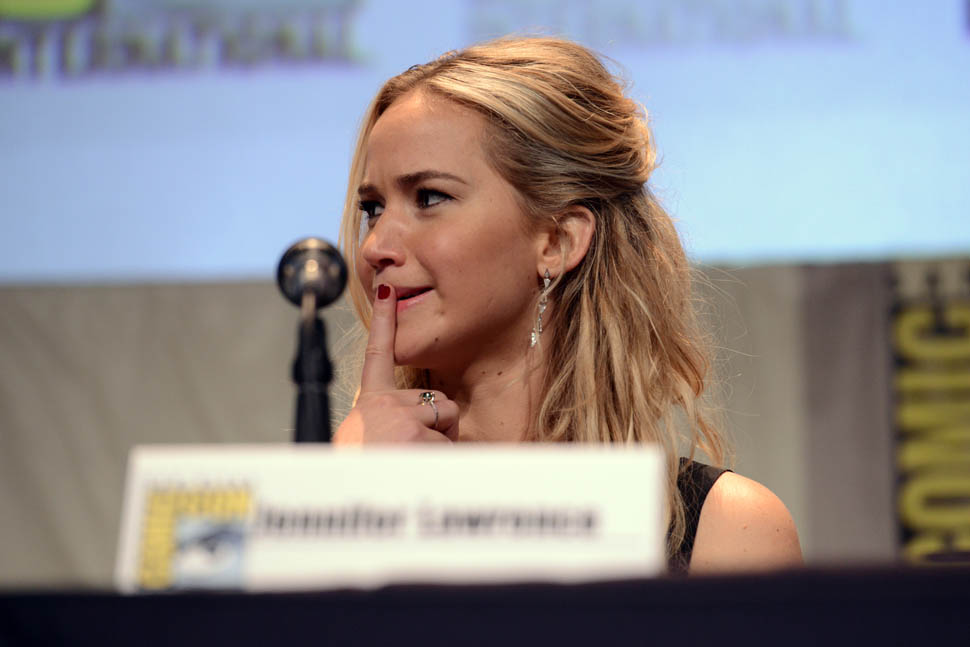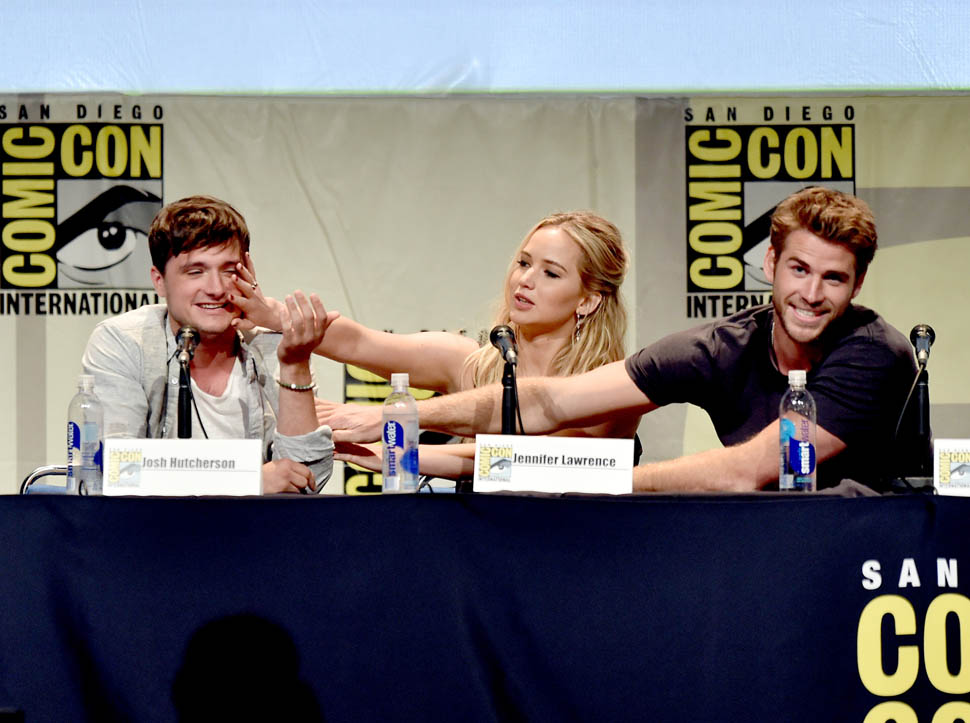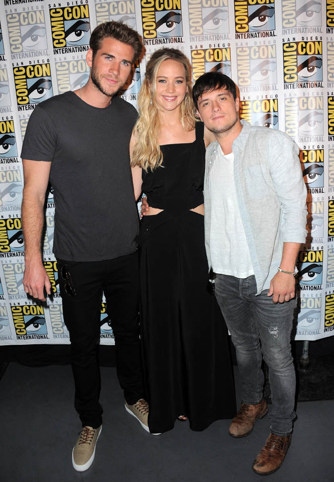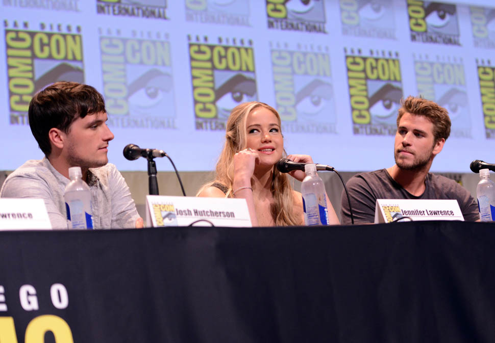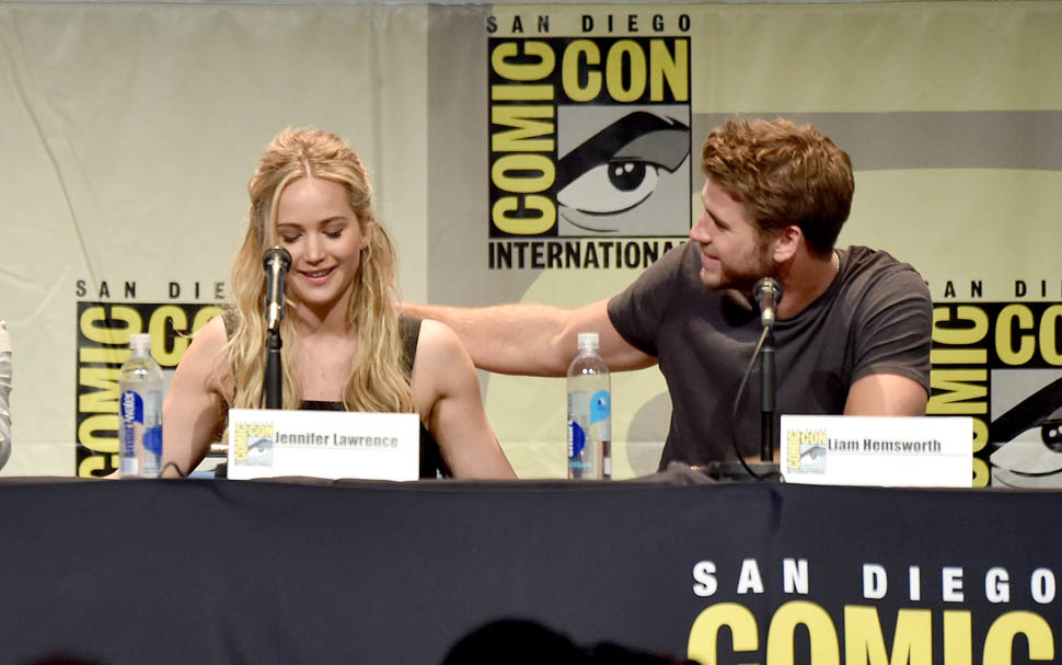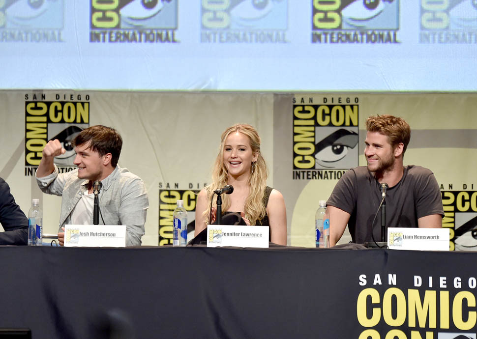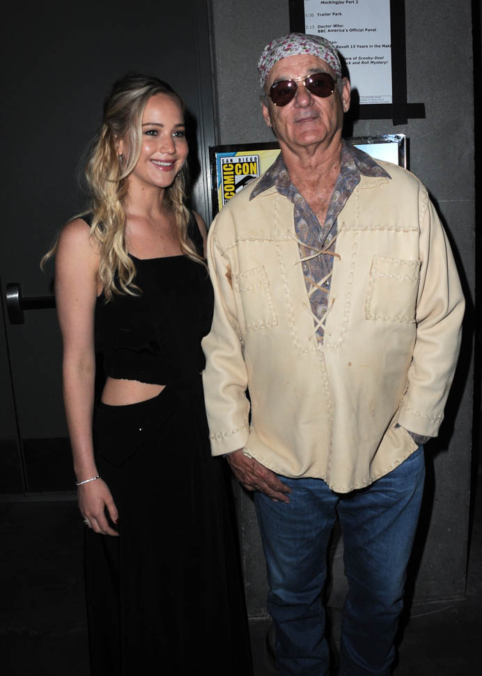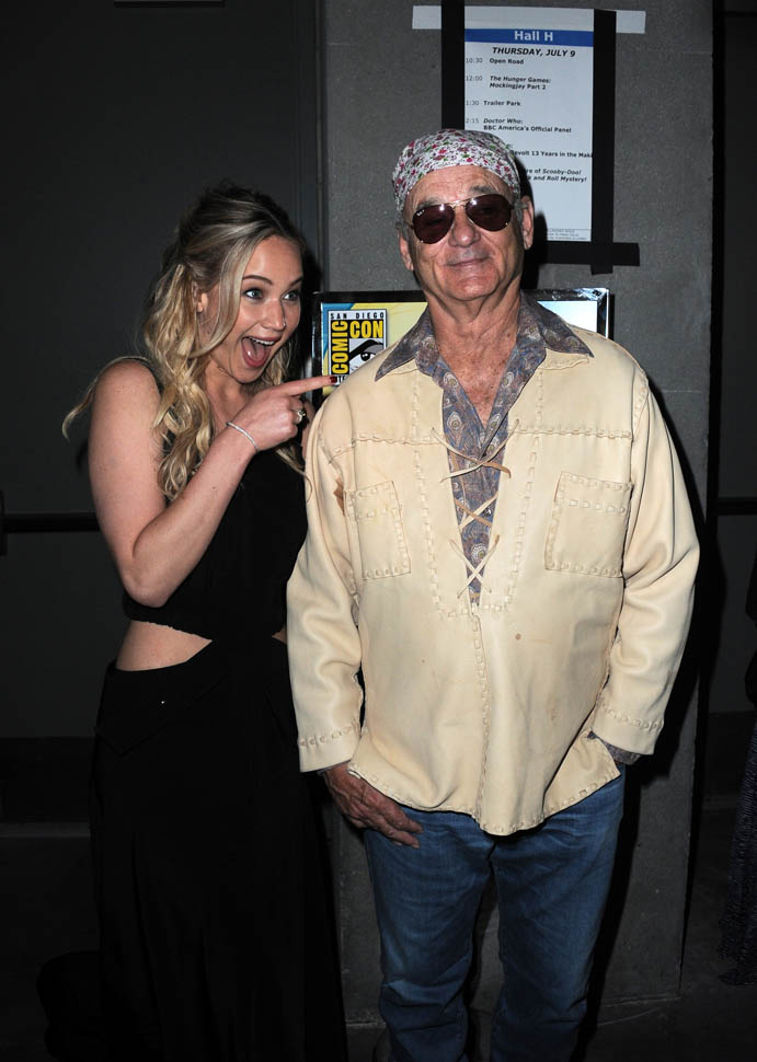 The Mockingjay 2 panel just wrapped not too long ago at Comic-Con. The big 3 were all there – Jennifer Lawrence, Josh Hutcherson, Liam Hemsworth. But, really, the story is Katniss. Always Katniss. Always JLaw. According to the tweets I’ve been reading, she really delivered for the fans. Which means she was the Jennifer Lawrence we’ve seen so often on promotion – a little sassy, a little crass, always relaxed, funny, with an edge when required, but never seeming ungrateful. She’s really, really good at this part of the game. It’s probably why Hollywood worships her. To back up the talent, she can sell. She can sell so well. Like, Jennifer Lawrence is never going to show up at one of these things and sulk. You can see it in the pictures. She turned it on today. Click here to read about the event. I can totally imagine her expression and hear her saying “My favourite” to the social media part. And I really want to know what it was like between her and Bill Murray, how that conversation went.