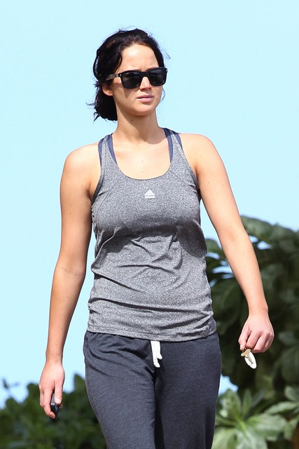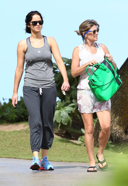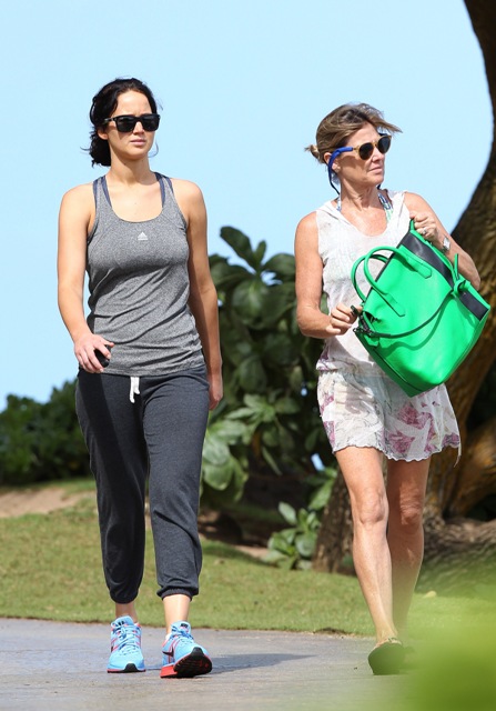 Here she is in Hawaii where Catching Fire will resume shooting next week. Her family has joined her there though for the holiday, which is sweet. Some down time then before work, and then 3 months of award season campaigning.