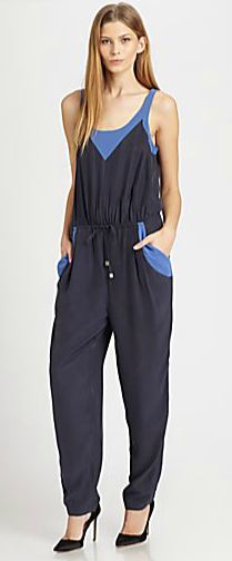 The suiting trend is invading fashion in a big way and of course the jumpsuit is earning its stripes as well. Take a look here and here.
