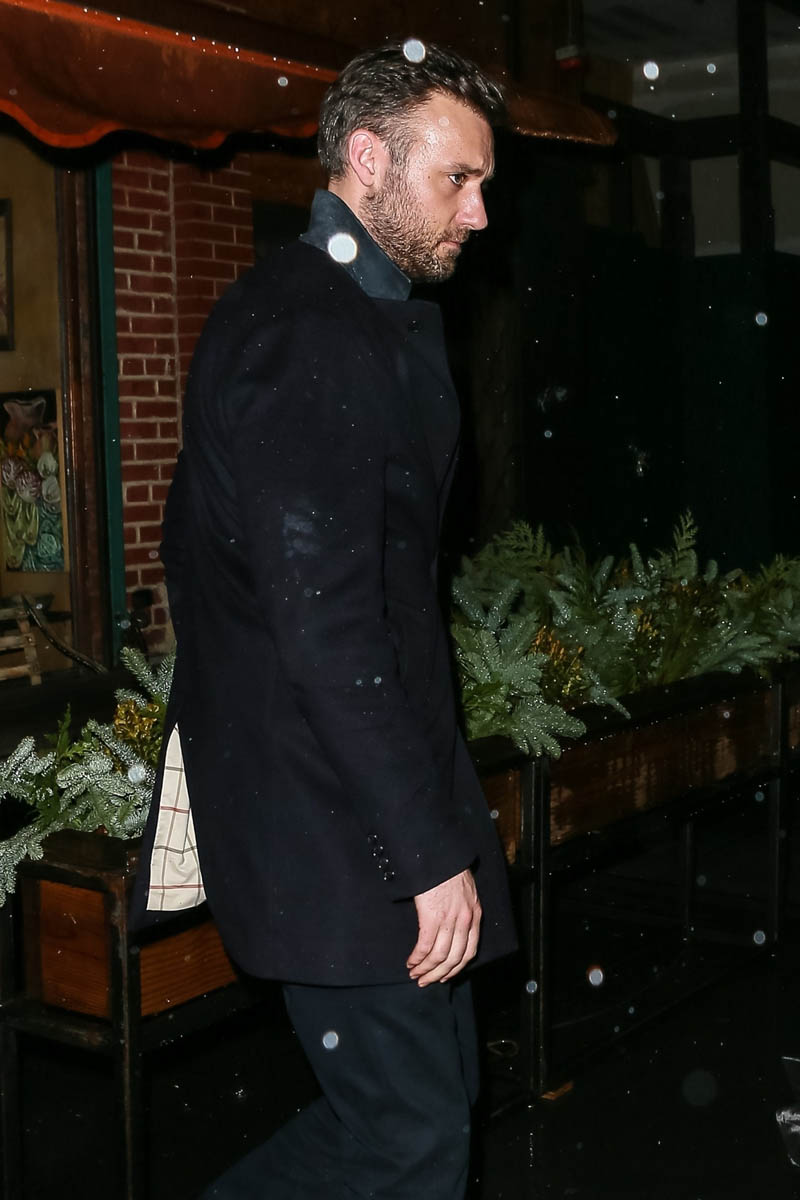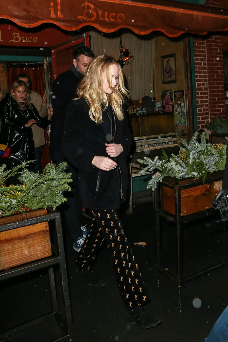 It’s not really an engagement walk, they just went out for dinner in New York last night, after it was confirmed that they are engaged. So it’s the first time the public has seen them since the news. Here they are leaving the restaurant and, as you can see, well, you can’t see.