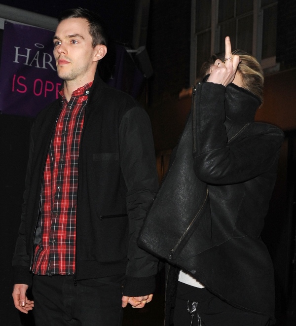 So can we not talk about the finger and talk instead about how she’s with Nicholas Hoult and they’re in London and they went out last night and they held hands???