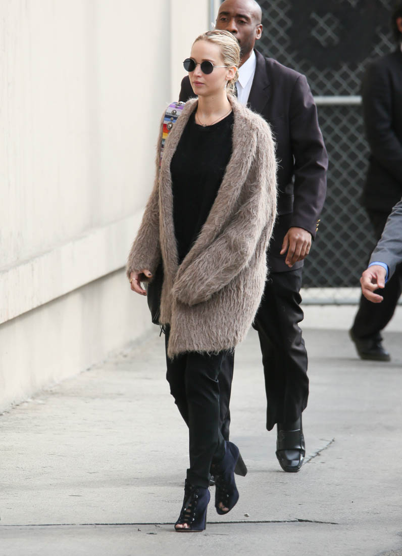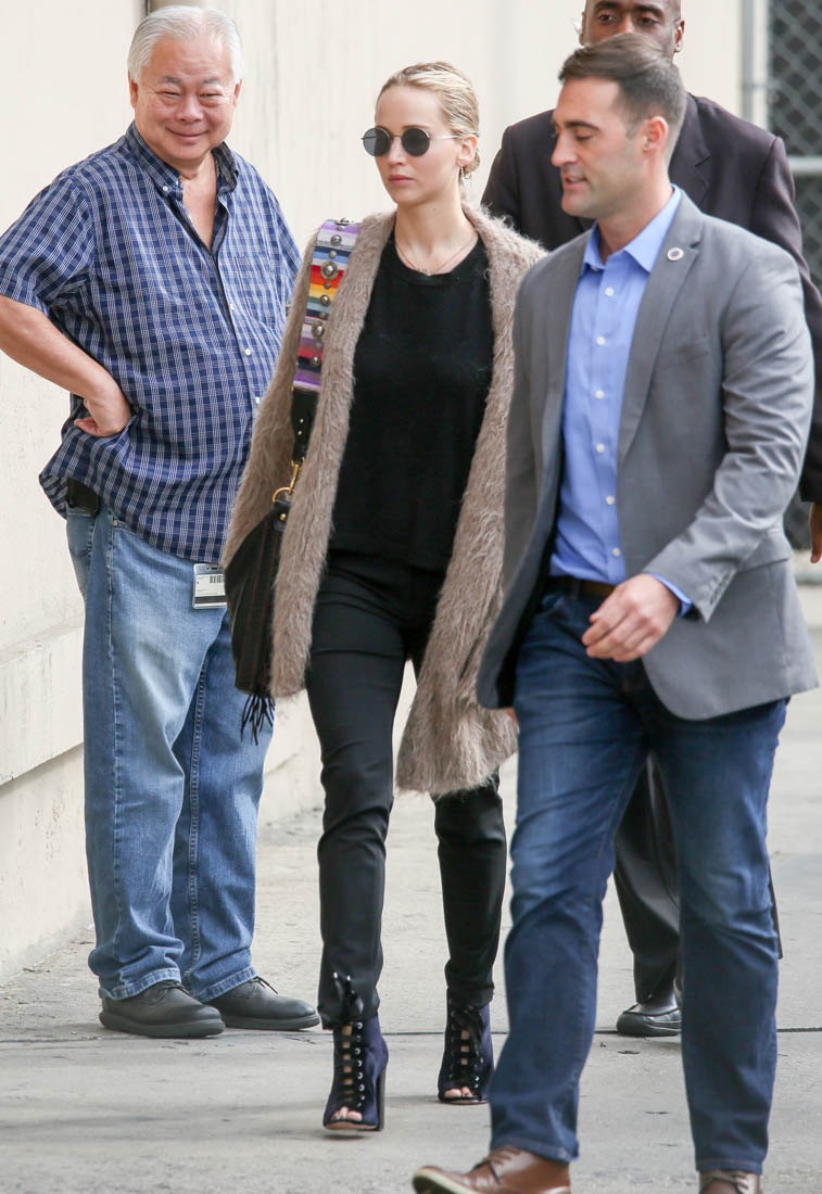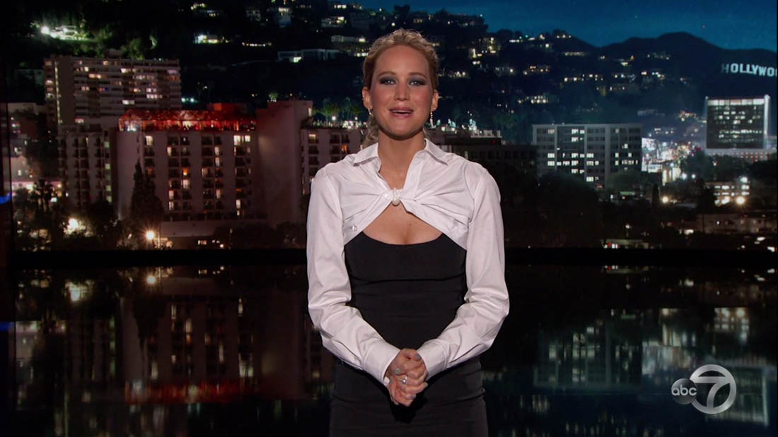 Did you watch Jennifer Lawrence hosting Jimmy Kimmel live last night? I selfishly took great pleasure seeing her have to read the prompter. She wasn’t great at it. See? It’s not easy. Not even for an actor who’s used to delivering lines. Anyway, Jen interviewed Kim Kardashian during the show. They know each other. Jen goes over to Kris Jenner’s for dinner. Even still, the whole conversation was super awkward. And it’s not because Jen wasn’t trying. She was fun, she went for all her questions. But Kim’s energy, man, I don’t watch enough of her to know if she’s always like that but is it always so… low? You know what they say about certain performers? That there’s an “it” to them? Kim is not a performer. And when you’re on a talk show, part of that is performance too. (Cele|bitchy)