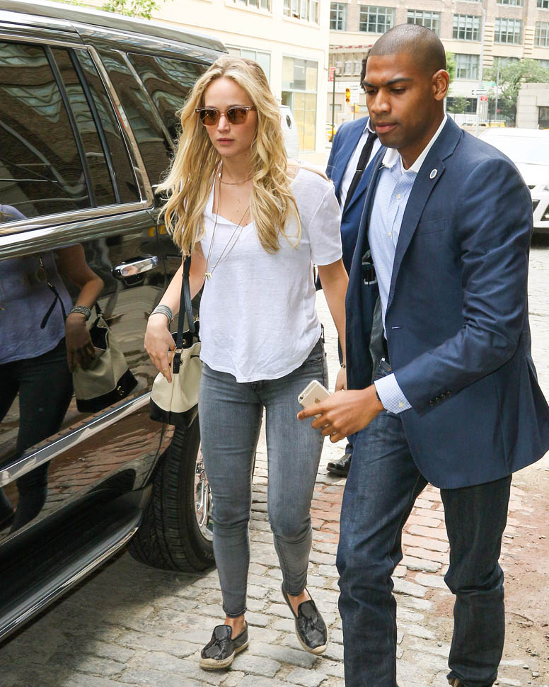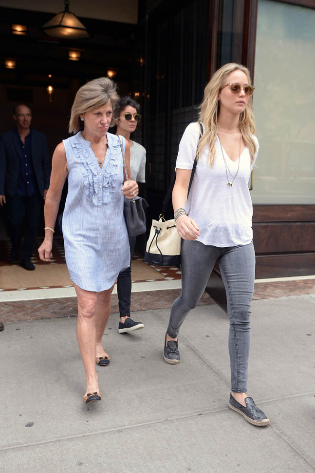 Jennifer Lawrence and her mother were photographed today in NYC ostensibly looking for a new apartment. She and Taylor Swift can trade off on hosting book club. True or false: no matter how old you are, your parents (if you are fortunate enough that your parents are still around) are involved in the home-hunting process, whether you like it or not. You don’t have a choice.