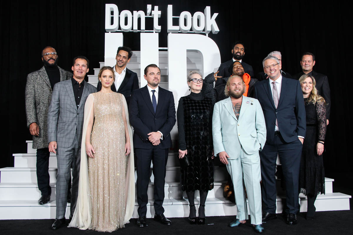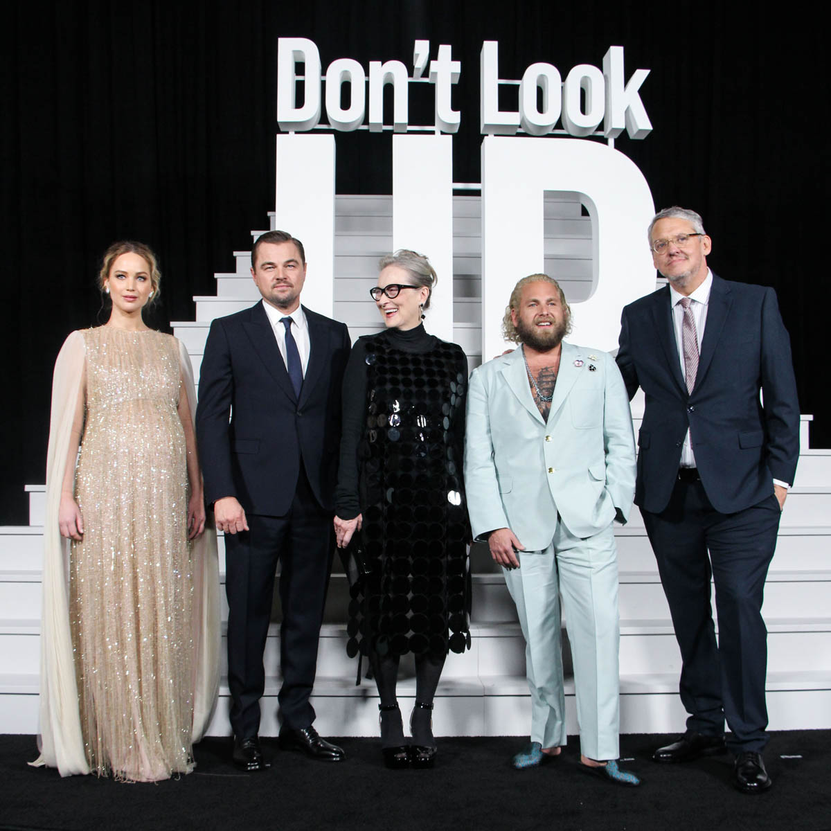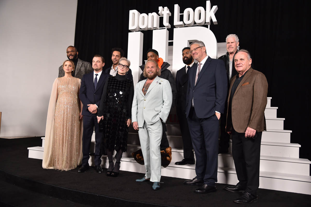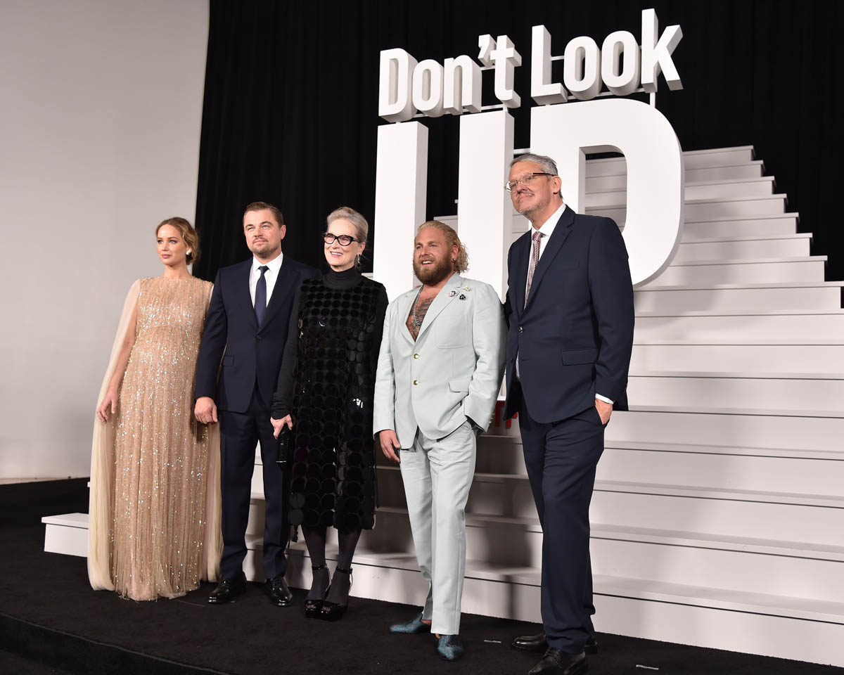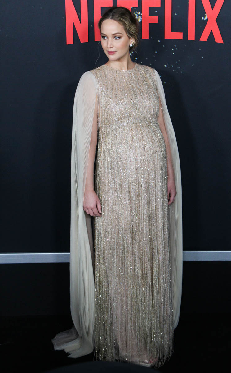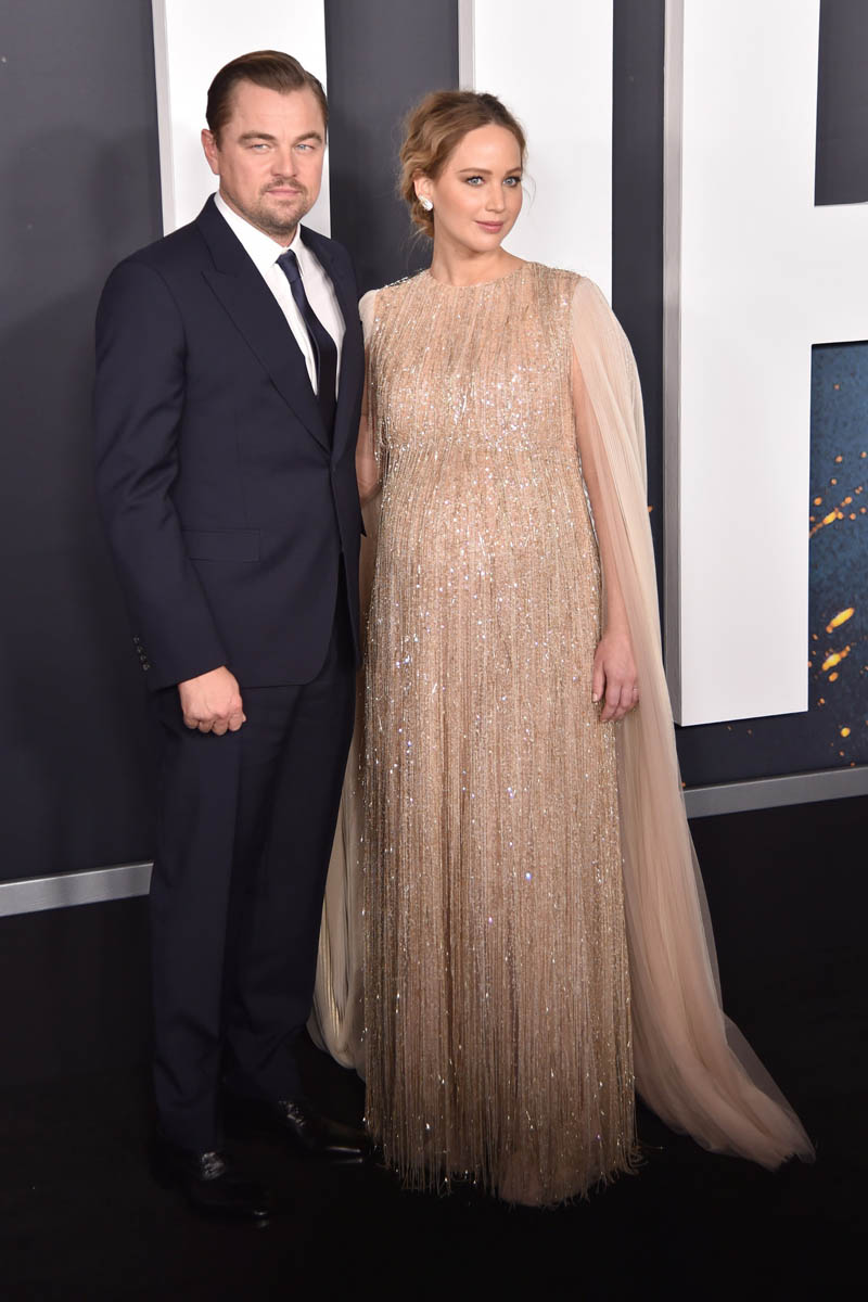 Even before COVID, Jennifer Lawrence was keeping it low-key. Last night’s Don’t Look Up red carpet was her first film premiere, by my records, since Dark Phoenix in June 2019. She is a major movie star, pretty sure I don’t have to list off her credentials, so this was the biggest event on the Hollywood schedule last night. Especially since in addition to JLaw, Leonardo DiCaprio, Meryl Streep, Tyler Perry, Jonah Hill, Kid Cudi, and so many more were in attendance alongside director Adam McKay. Disappointingly Ariana Grande, who is also in the movie, and collaborated with Kid Cudi on an original song for the film’s soundtrack, was not there. That photo of her with Jennifer would have been a monster headline.