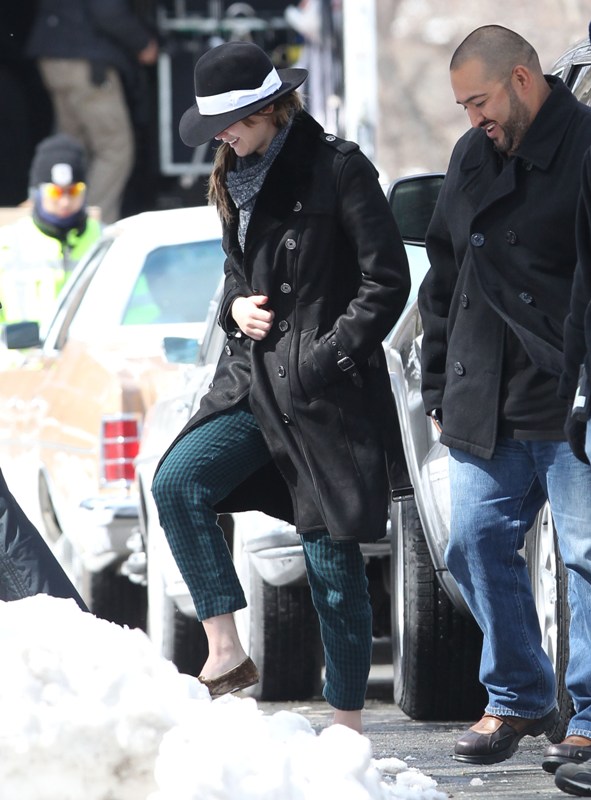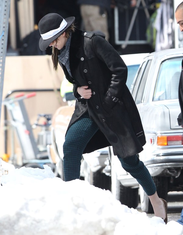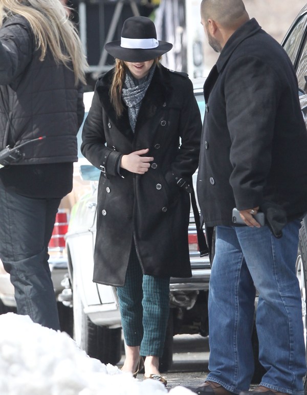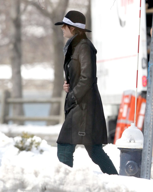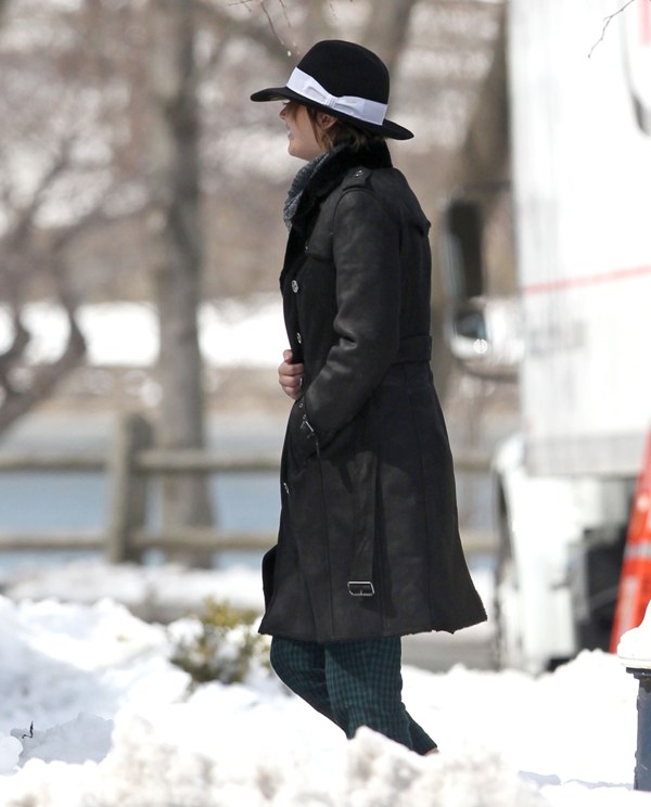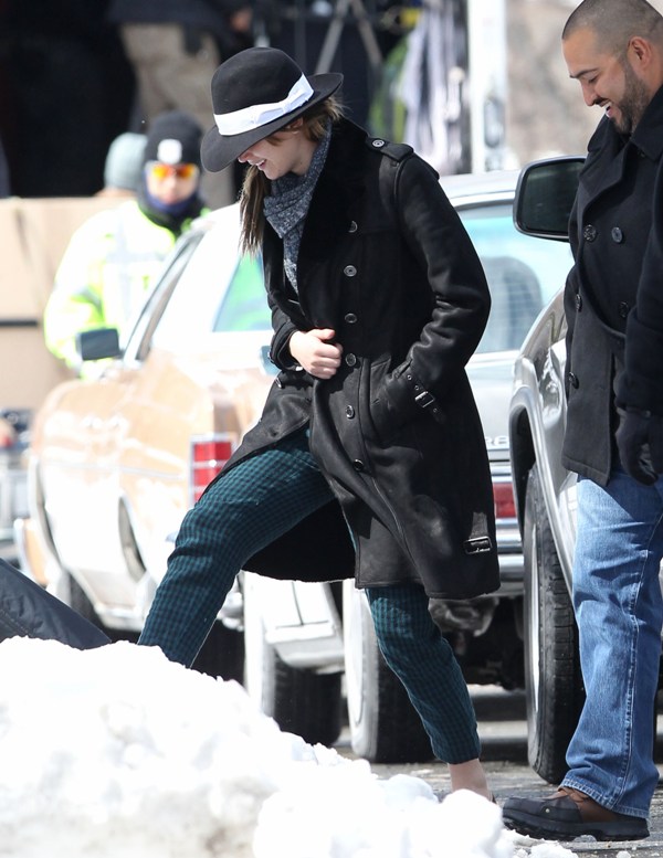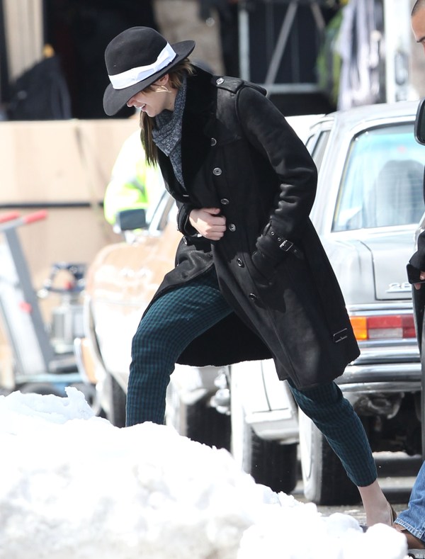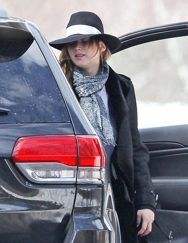 Here’s Jennifer Lawrence in Boston with no socks in the snow heading to work on the new David O Russell movie, also starring Bradley Cooper’s perm. It’ll be their third film together. Lawrence has kept a very low profile since winning Oscar three weeks ago. She was seen lighting up in Hawaii and then, astutely, disappeared. I know I keep saying it, but yes, the can disappear if they want to.