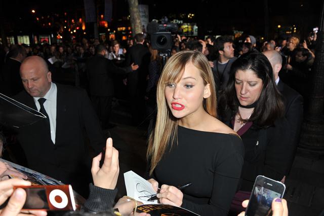 What I like about Lawrence, so much, is that even though she’s very reserved, she’s also extremely professional, and not mechanical and desperate about it either, like, for example, Chloe Moretz. She is deliberate about drawing the line between what she won’t give you, and what she should give you in order to support her projects and her career and she achieves this, simply, by being genuinely polite and considerate and, well, normal. (Julia Roberts is polite and considerate too. But like it’s a favour.) It’s really so easy this way. It’s exactly how you would in a non-celebrity setting, in an interview, in a business meeting. It’s amazing to me how Hollywood has a way of erasing these standard procedures and behavioural expectations. No, I did not come here to help promote your movie only to wait an hour so you could have an argument with your boyfriend and then roll your eyes at me when I ask you to tell me about your part. There is none of this in Jennifer Lawrence (so far).