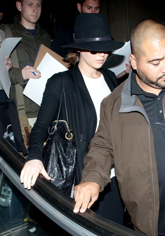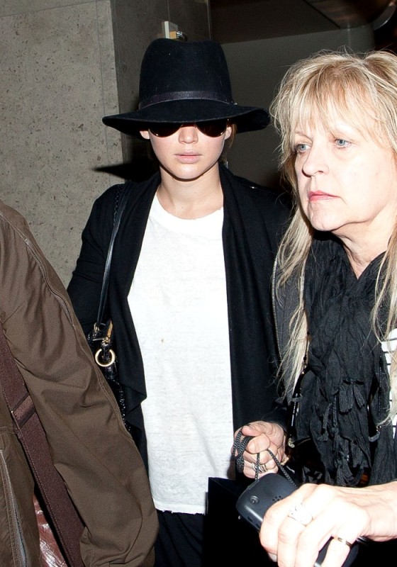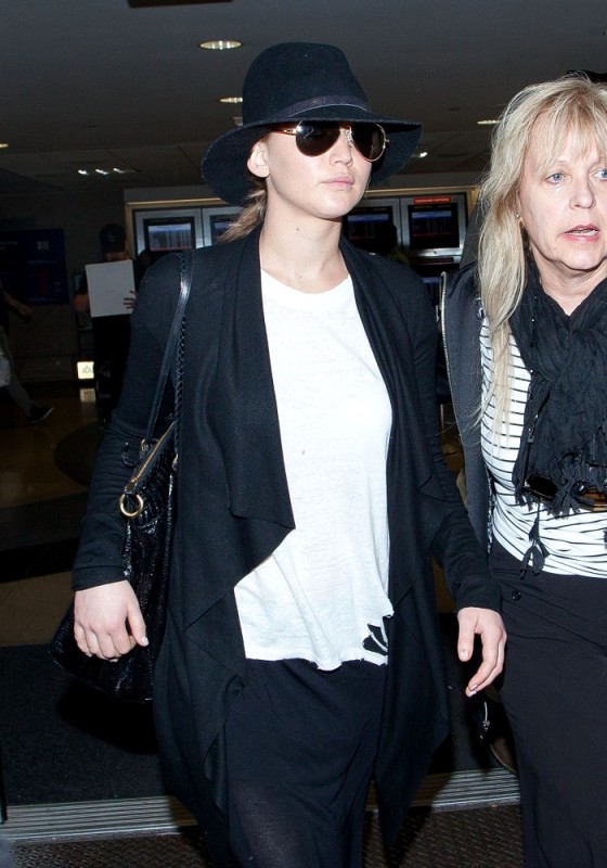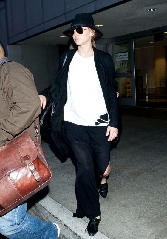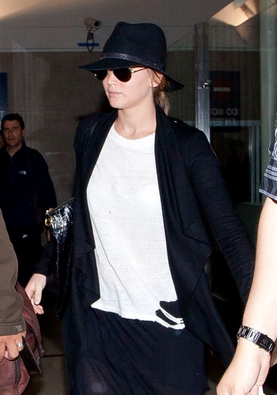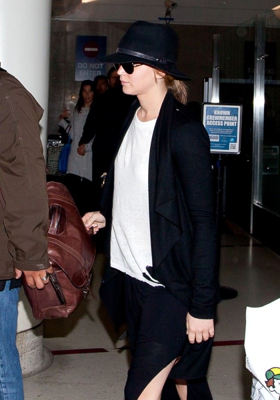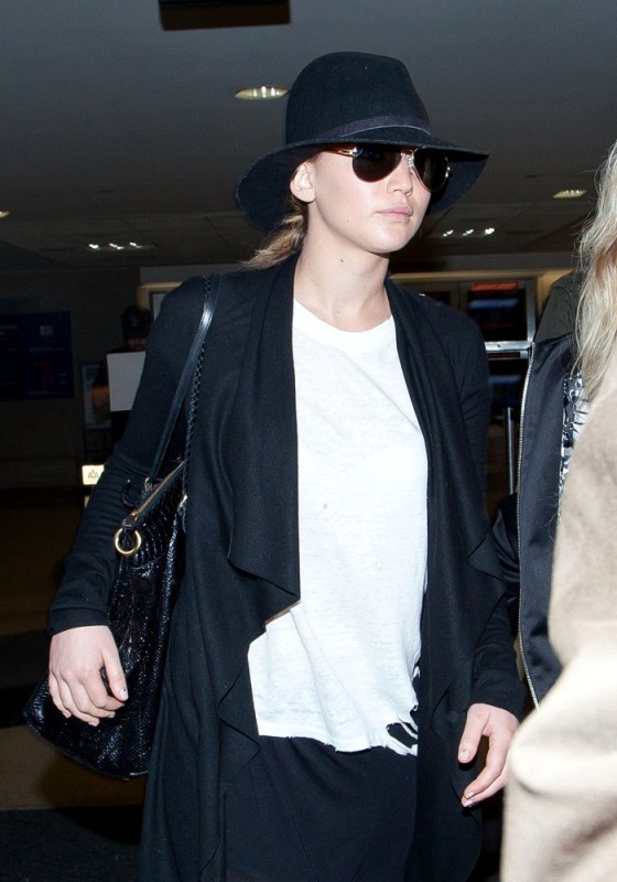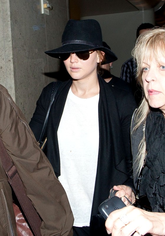 ... Jen returned to LA in her black floppy hat.