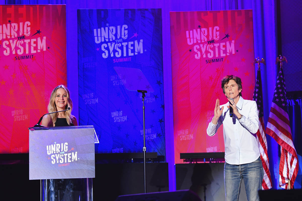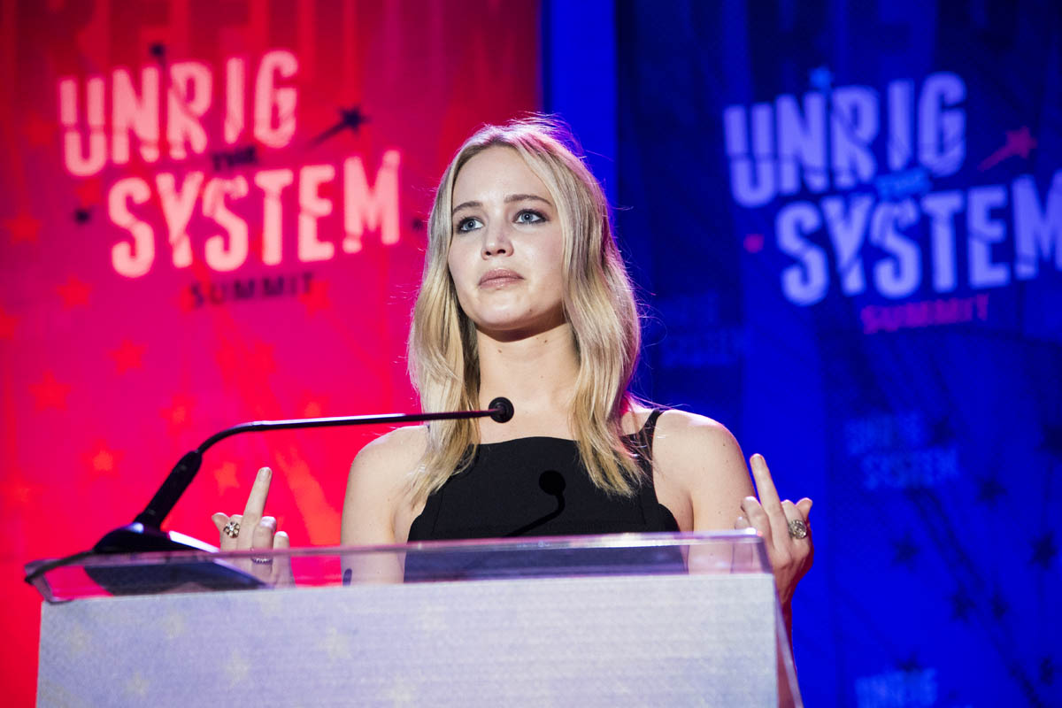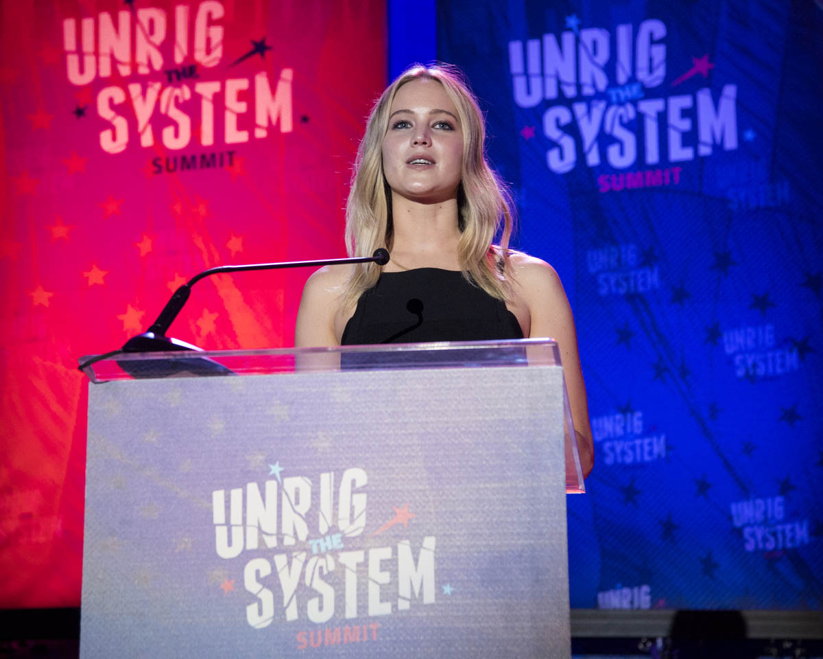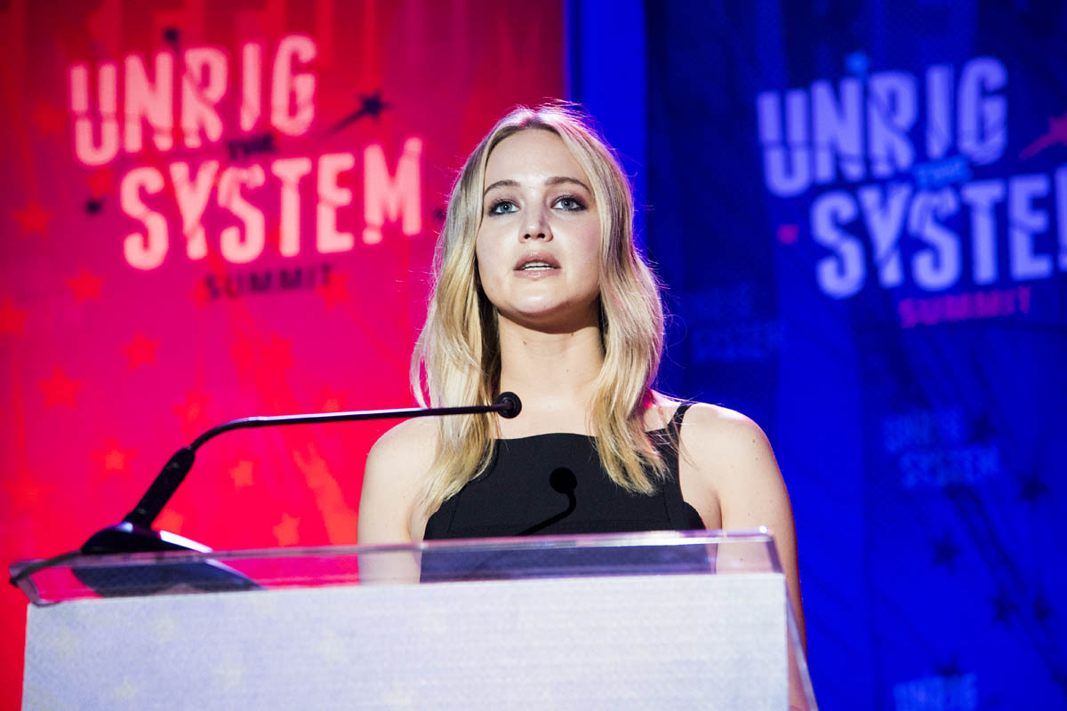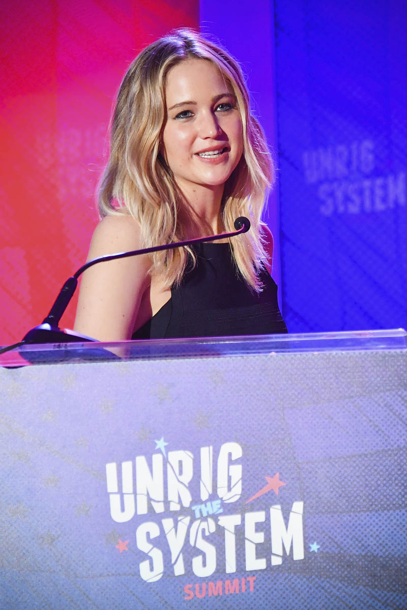 Jennifer Lawrence was in New Orleans this past weekend for the Unrig the System summit at Tulane University. She sits on the board of Represent.Us, a non-profit “dedicated to ending political bribery”, which hosted the event; she participated in panel discussions, moderated interviews, and presented awards. Jennifer was prepared and entertaining. She was engaged. She did her work. You can read more about Unrig the System here and watch the video here.