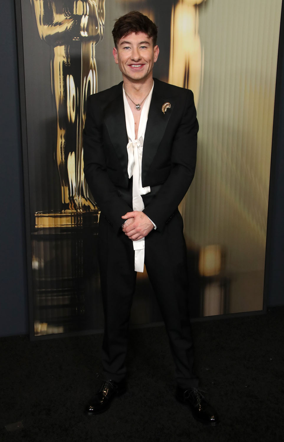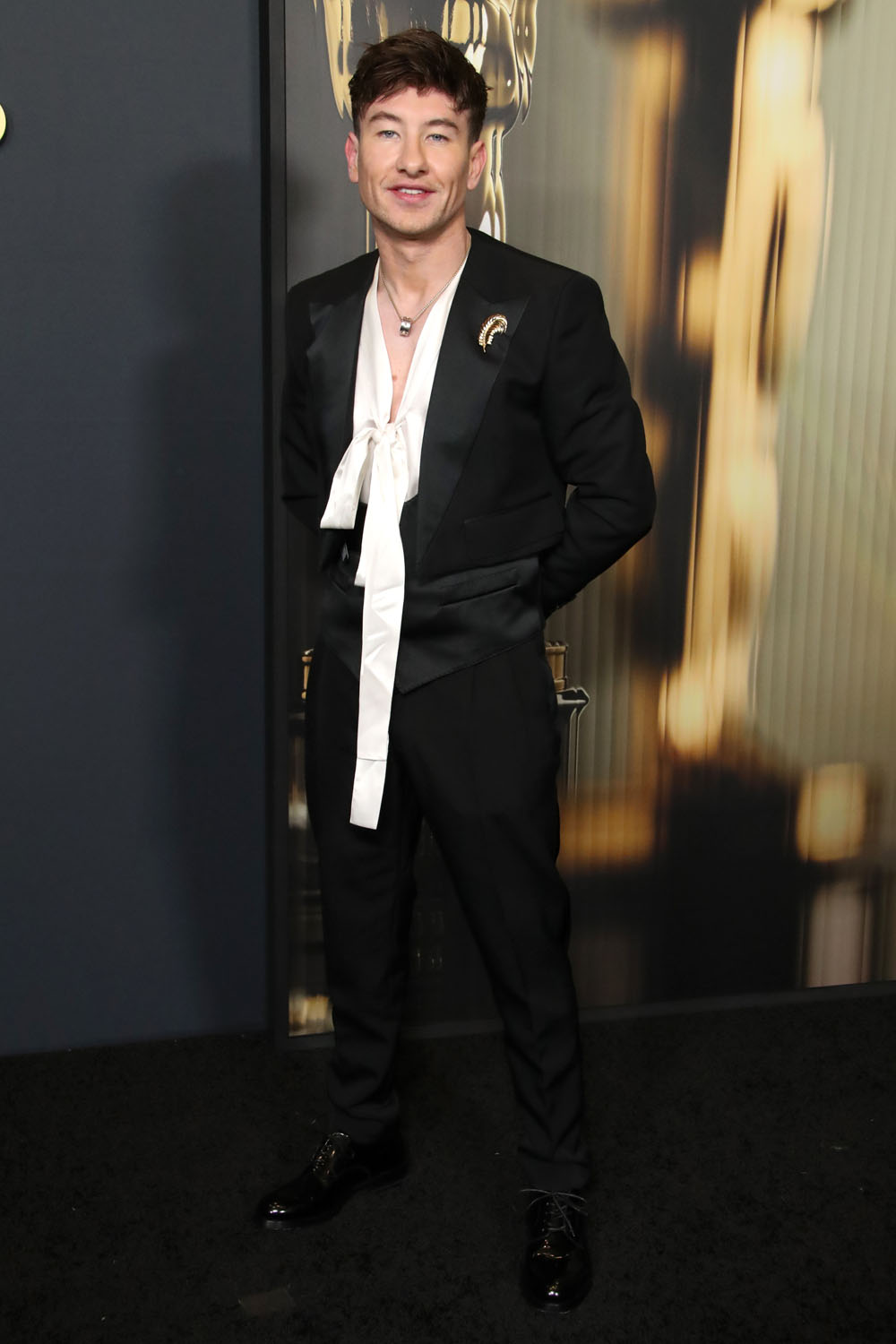 Adding to the list of previous nominees who will likely be invited again – Barry Keoghan in a long Dolce & Gabbana waistcoat under a cropped jacket with that white blousy bow over the chest…