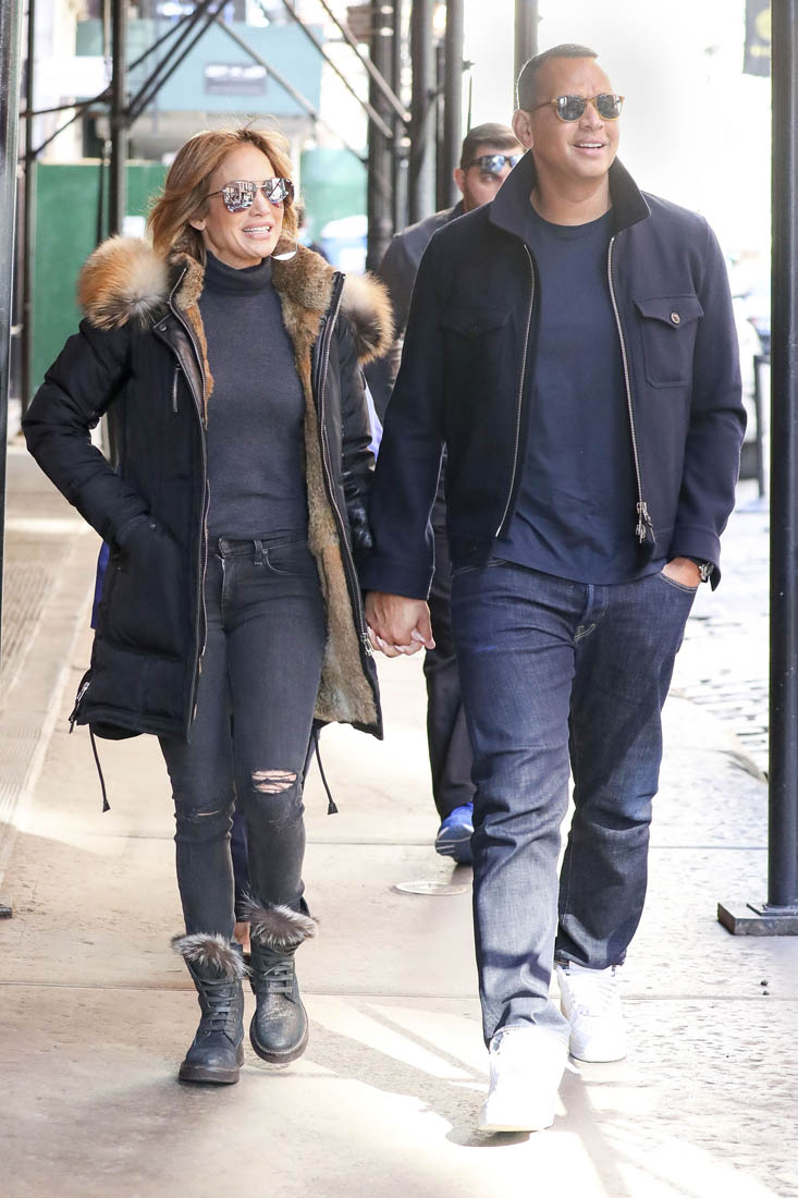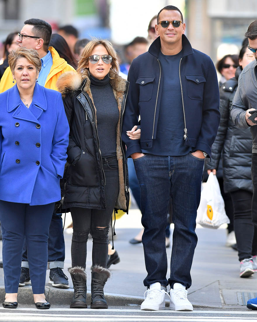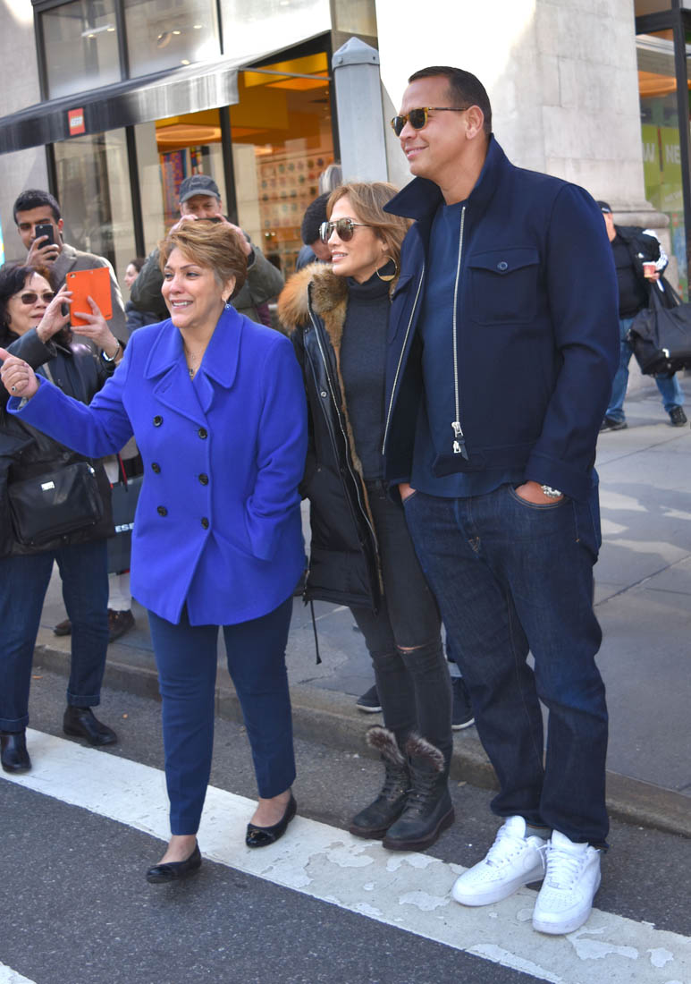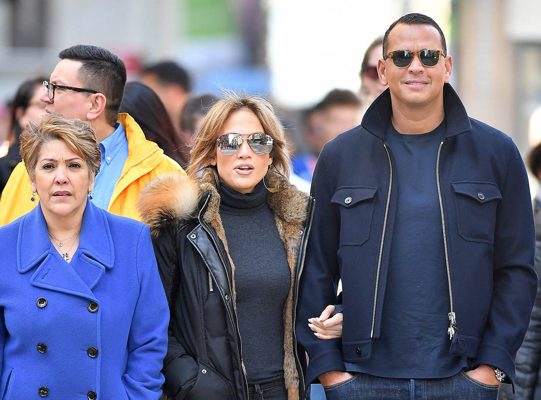 Jennifer Lopez was seen hanging out with Alex Rodriguez's sister a couple of weeks ago and they're already calling JLO an "in-law". Here they are in New York yesterday with her ma. As we saw on Friday they're now giving up shots of themselves not only in the same frame but also holding hands, linking arms, smiling into each other's faces. And, it's implied, all with her ma's approval.
