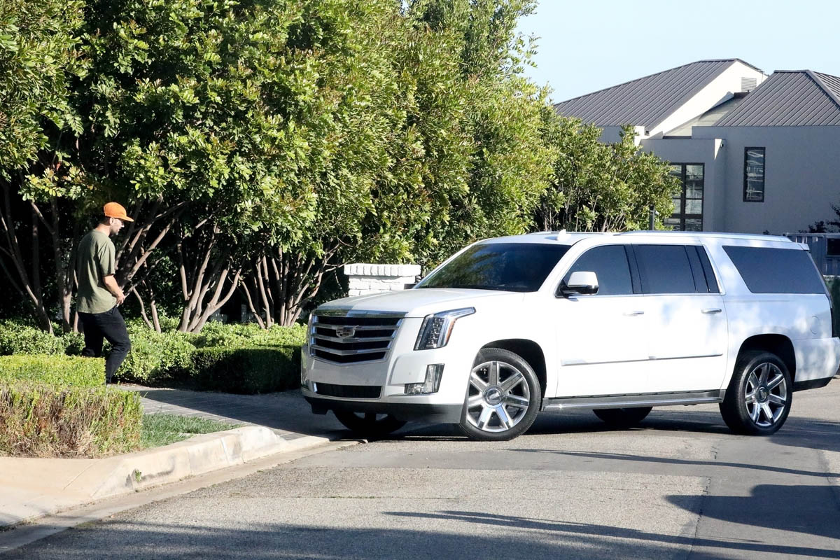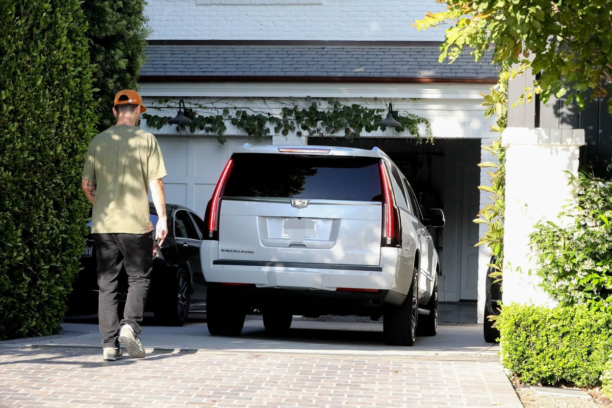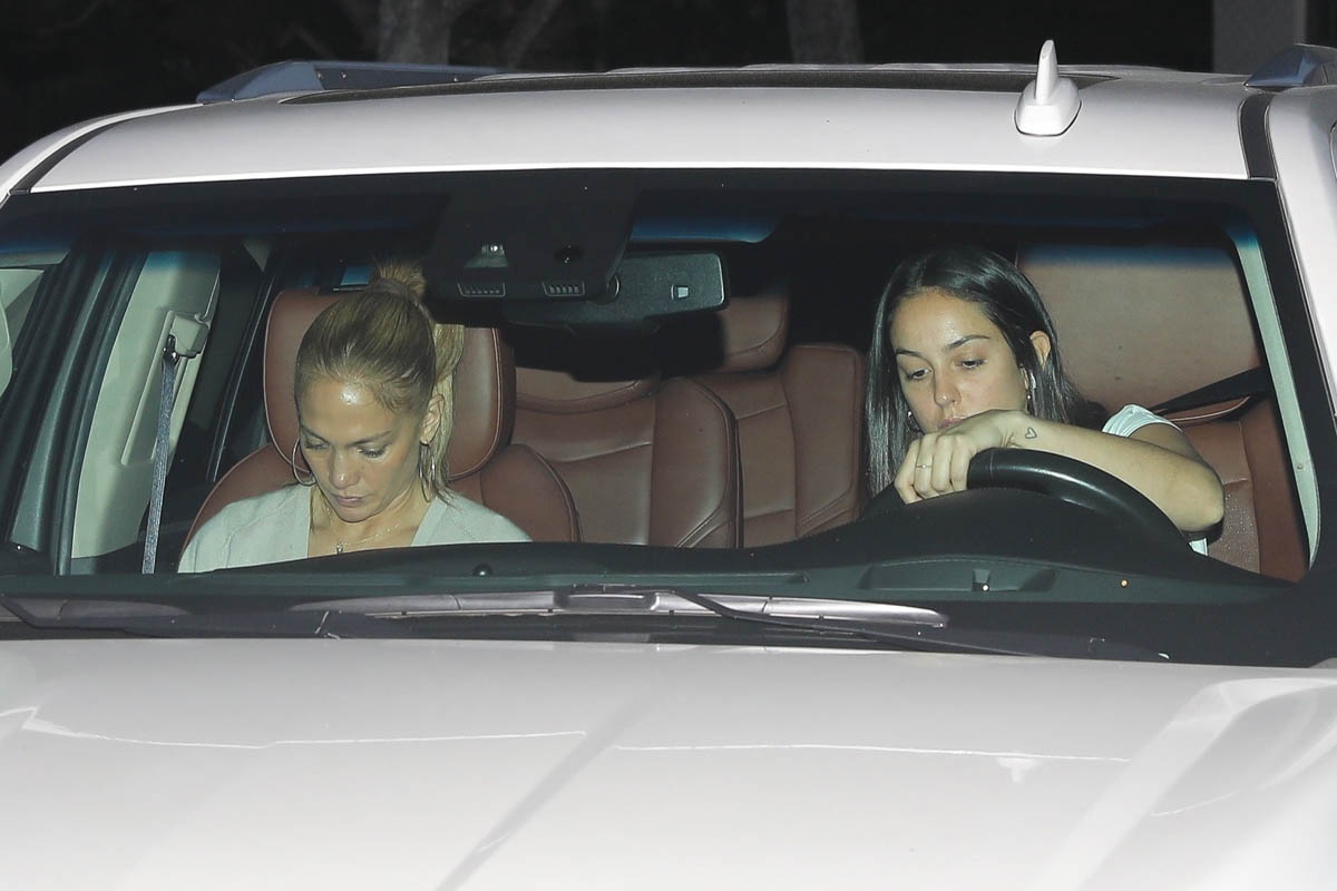 Attached - JLo arriving at and leaving Ben's place in Brentwood the other day.