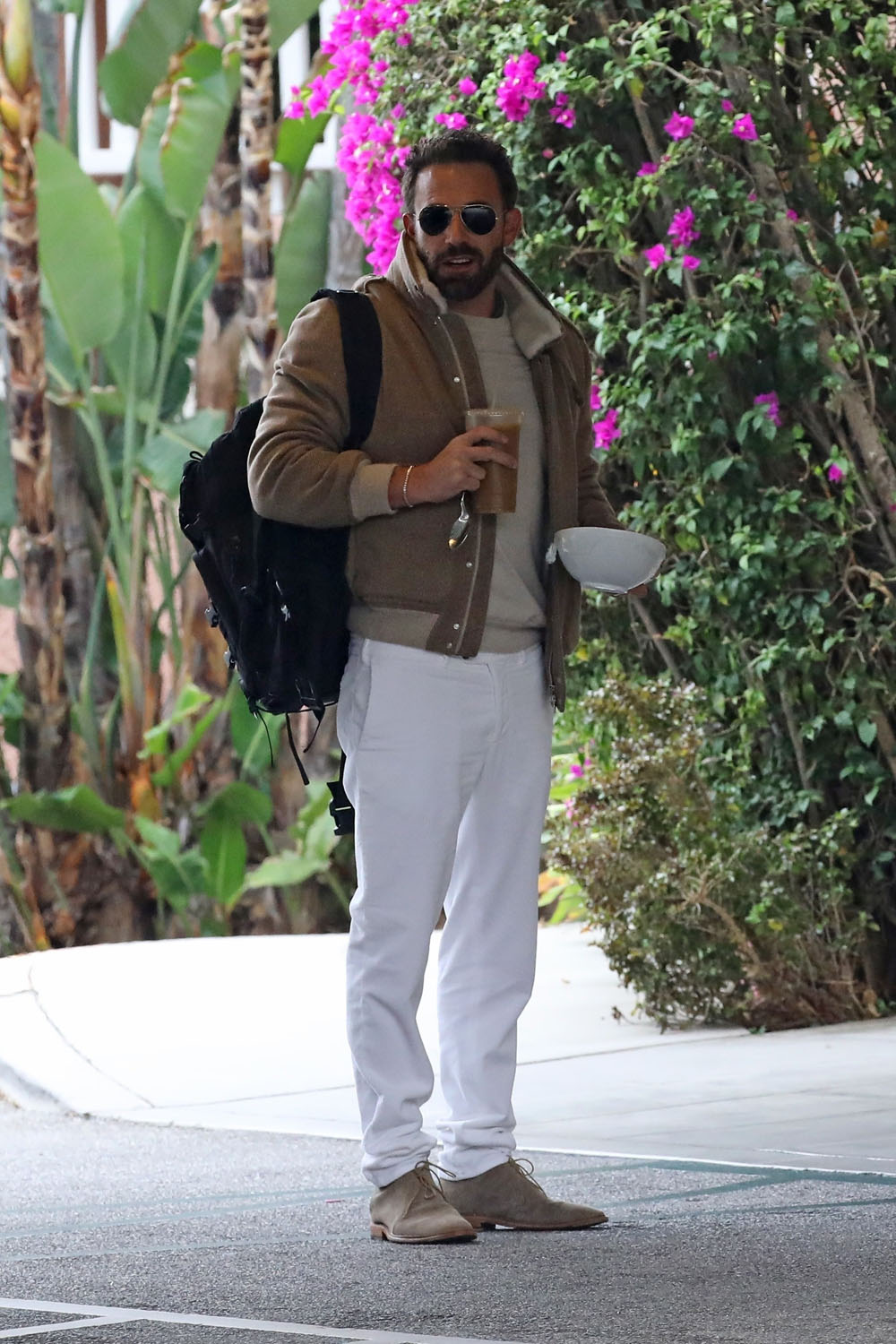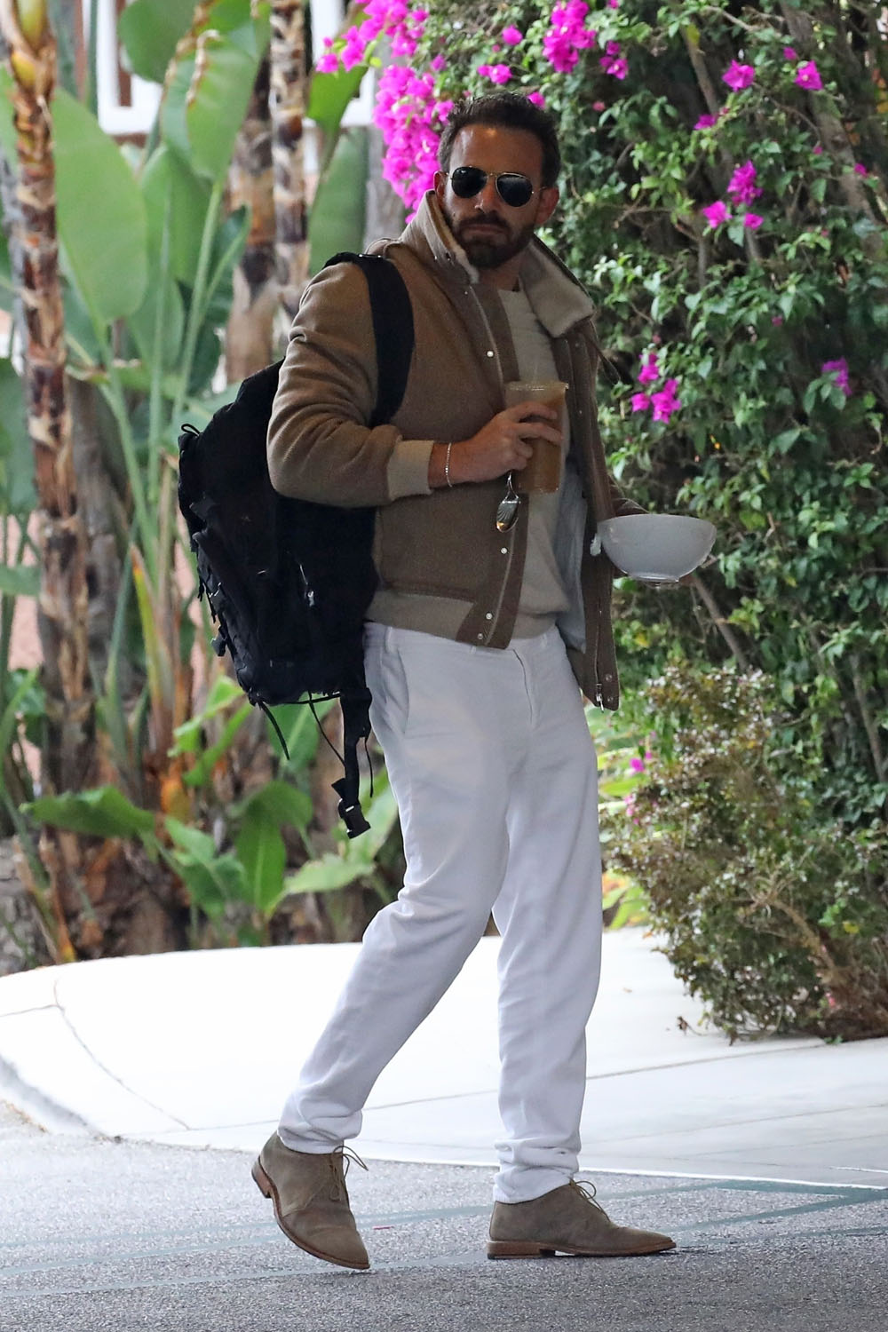 They went to brunch at the Beverly Hills Hotel and Ben in particular is dressed for it. This is an advertisement for a brunch outfit, look at him. Camel coat, light sweater, khakis, and suede shoes, it’s like the script called for “middle-aged man goes for high-end brunch” and the costume designer nailed the job.