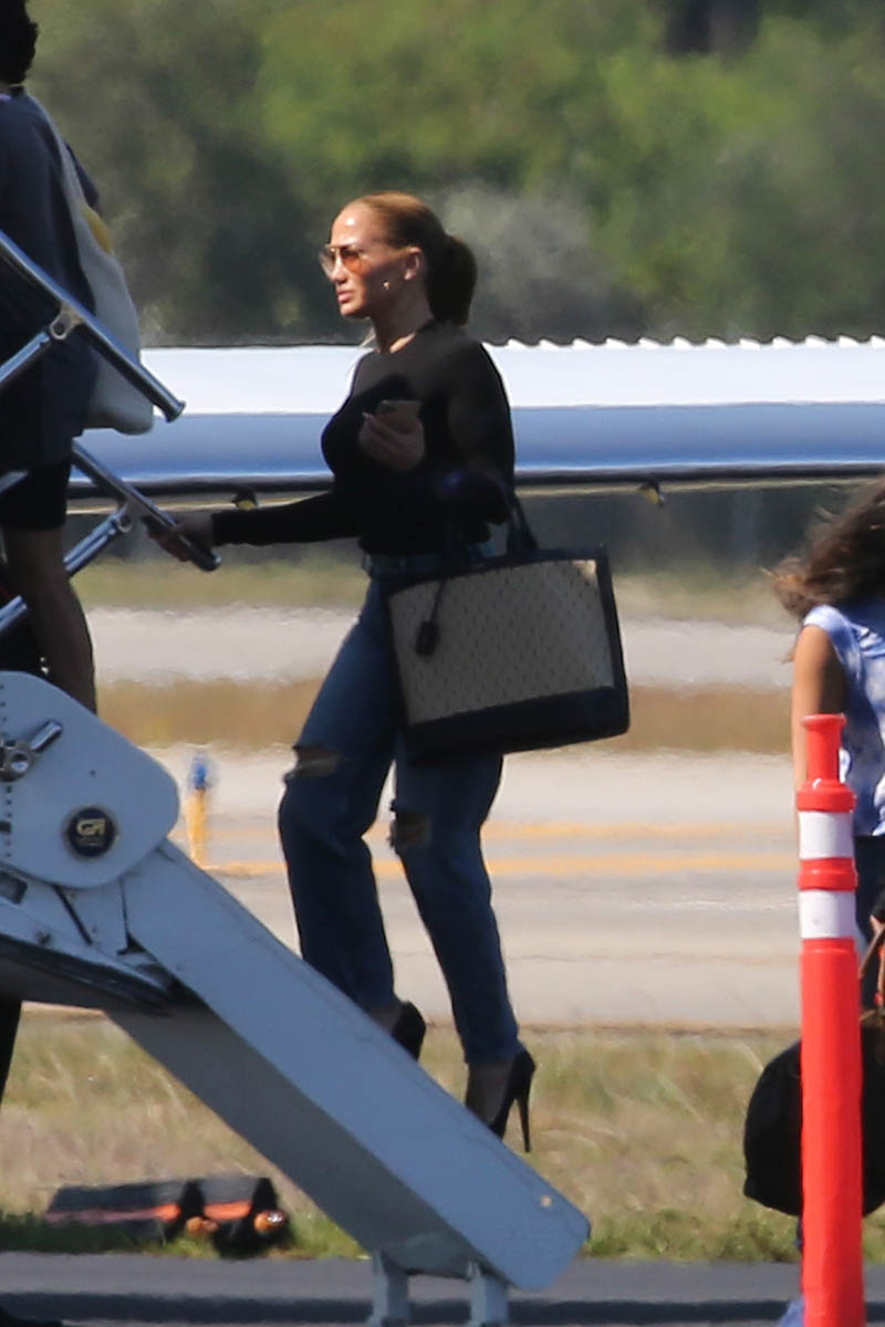 These Charlotte Olympia heels that she’s wearing for the flight – how long has it been since we’ve seen a pair of Charlotte Olympias? They were everywhere, on every red carpet, like maybe five or six years ago and then it got kinda old. Is JLo trying to bring them back? I’m over them. And I’m not so over them that I’m no longer over them.