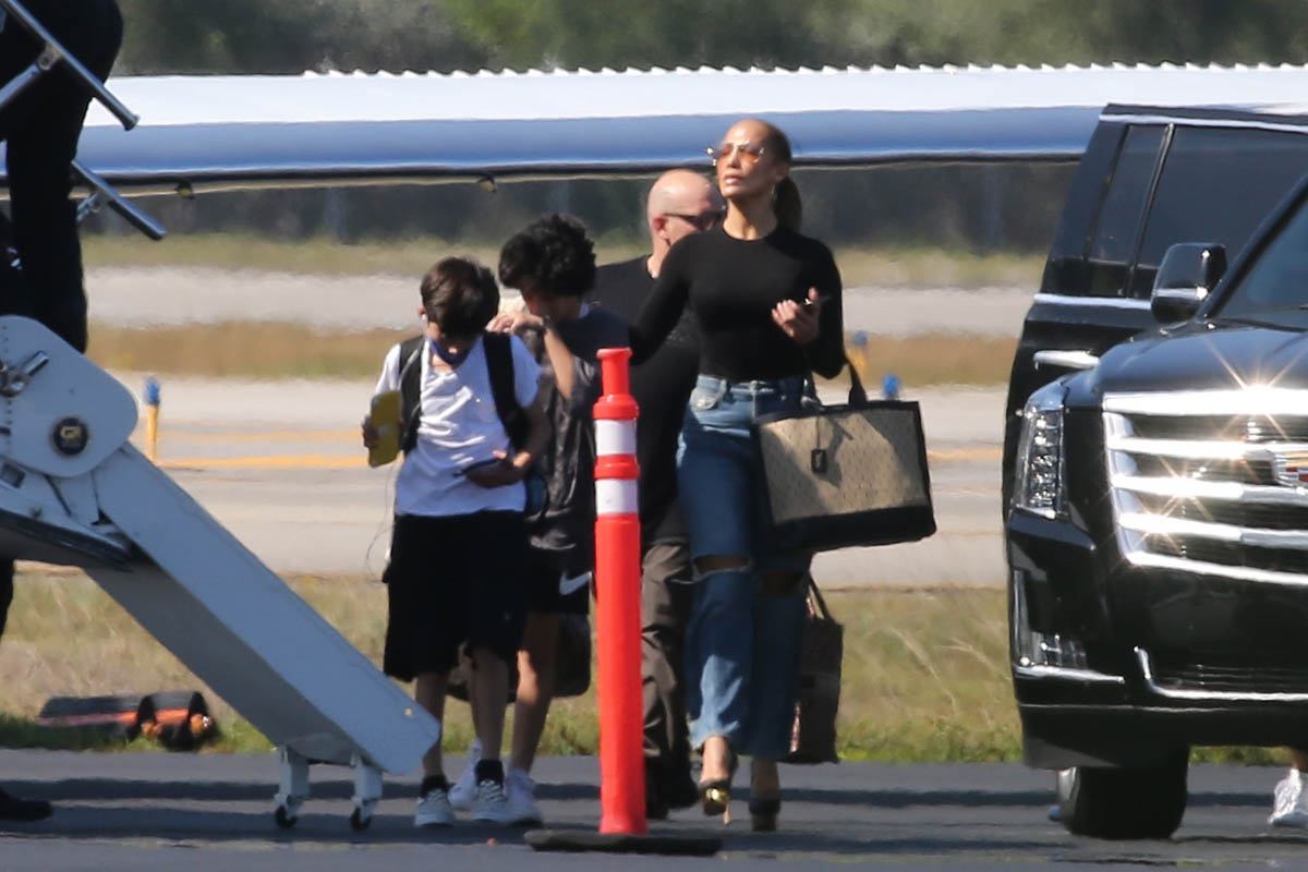 JLo was then seen boarding a private jet with her kids, destination unknown. Not even sure how long the trip was since there are also new pap shots of her at the gym. Has she repeated a gym outfit? This is what I want to know because I don’t think I’ve seen a repeat and now I’m wondering what she does with the gym clothes she’s already been papped in. Speaking of clothing though…
