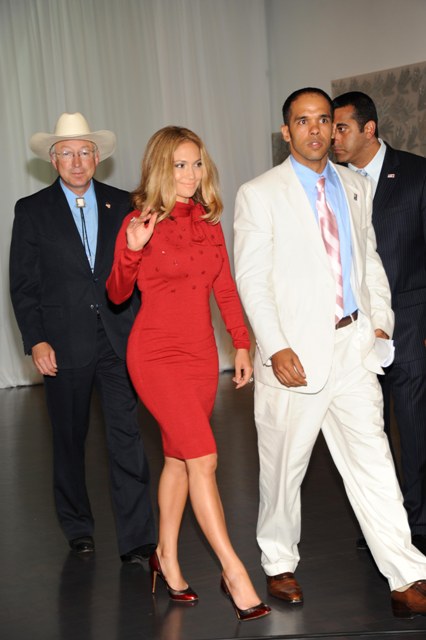 She graced a luncheon yesterday in Denver, perhaps part of the game plan agreed upon when she met with Obama staffers on Capitol Hill in June. This is the weave style JLo selected for the DNC: teased at the crown, not too long, not too short, and homemaker friendly.