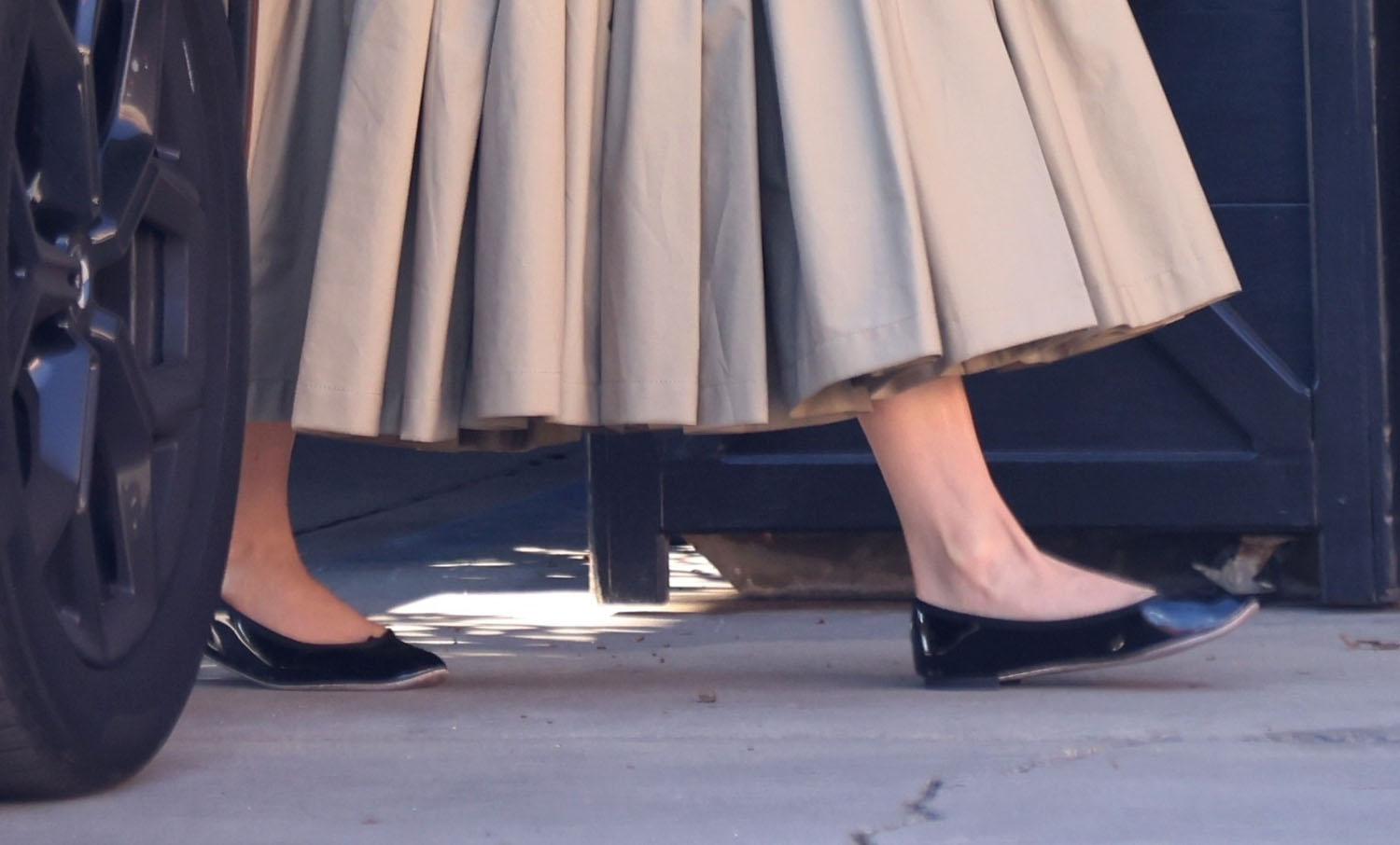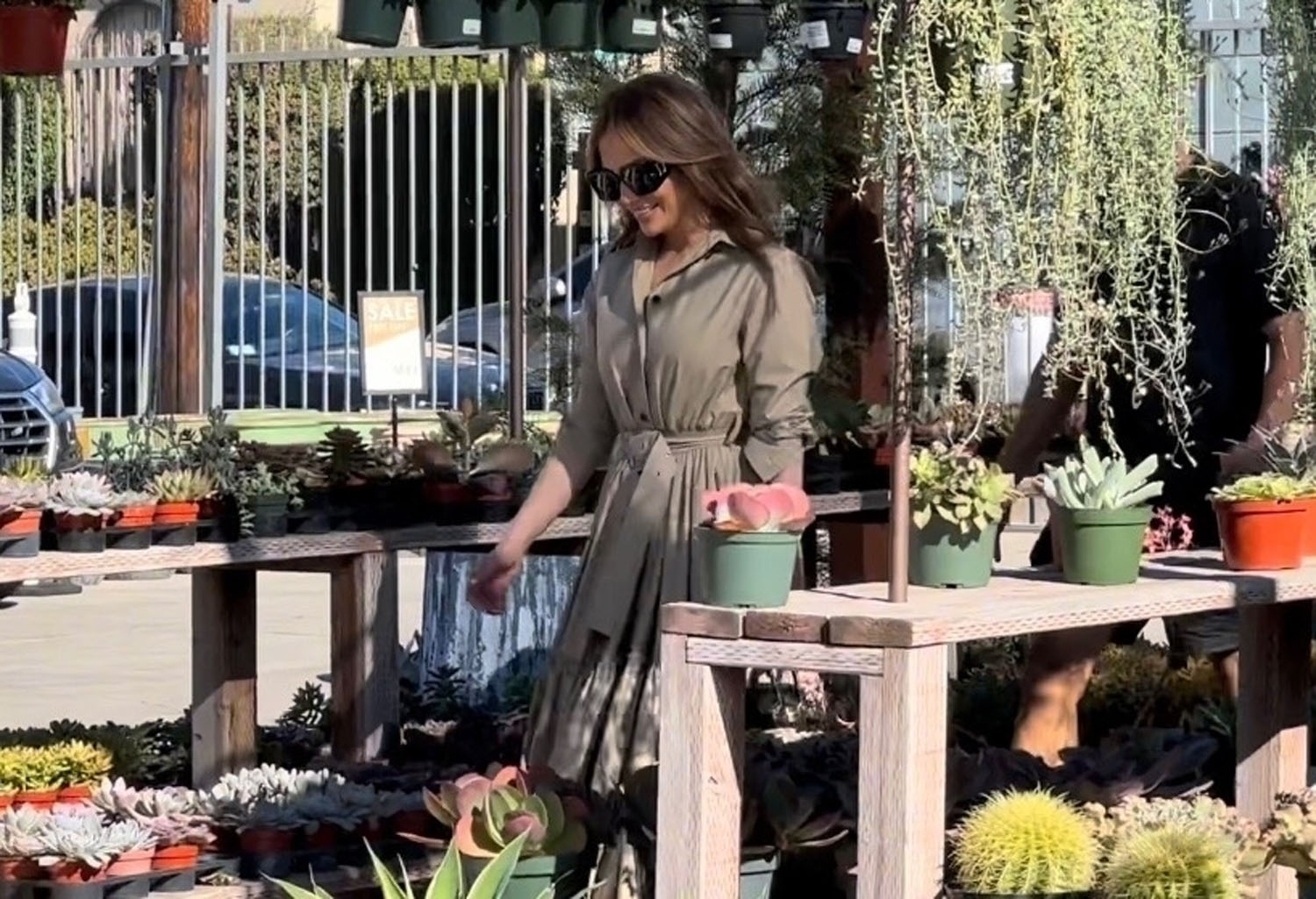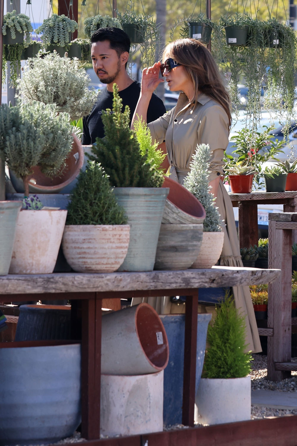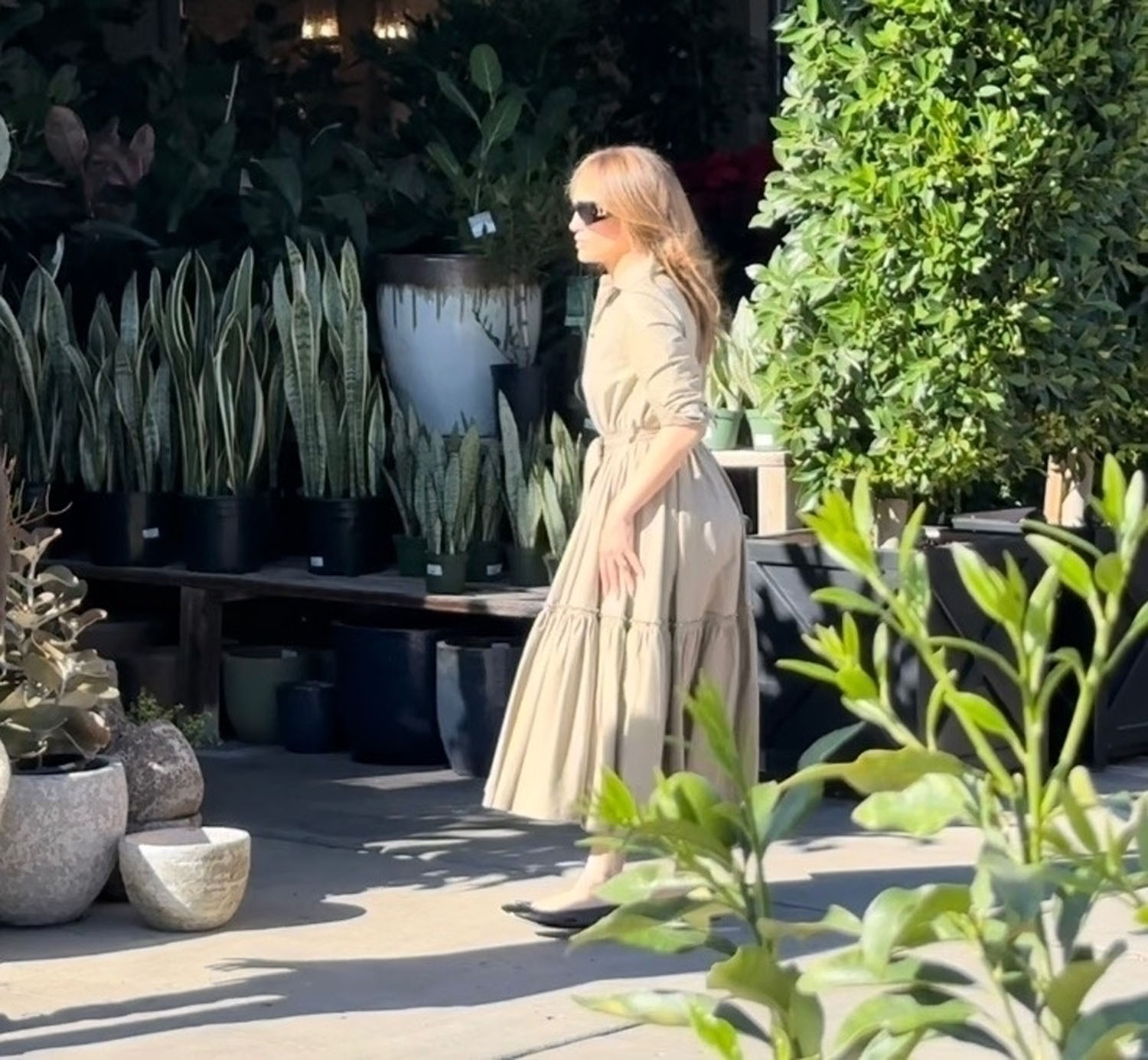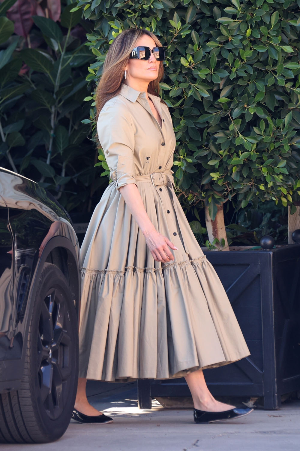 Jennifer Lopez did some pre-Thanksgiving shopping yesterday in LA, seen shopping for plants ahead of the holiday. This is a great khaki trench dress on her, and I guess it’s her version of dressed down, because she’s wearing ballet flats. Not the style of footwear I would ever associate with JLo but that was the mood for the day.