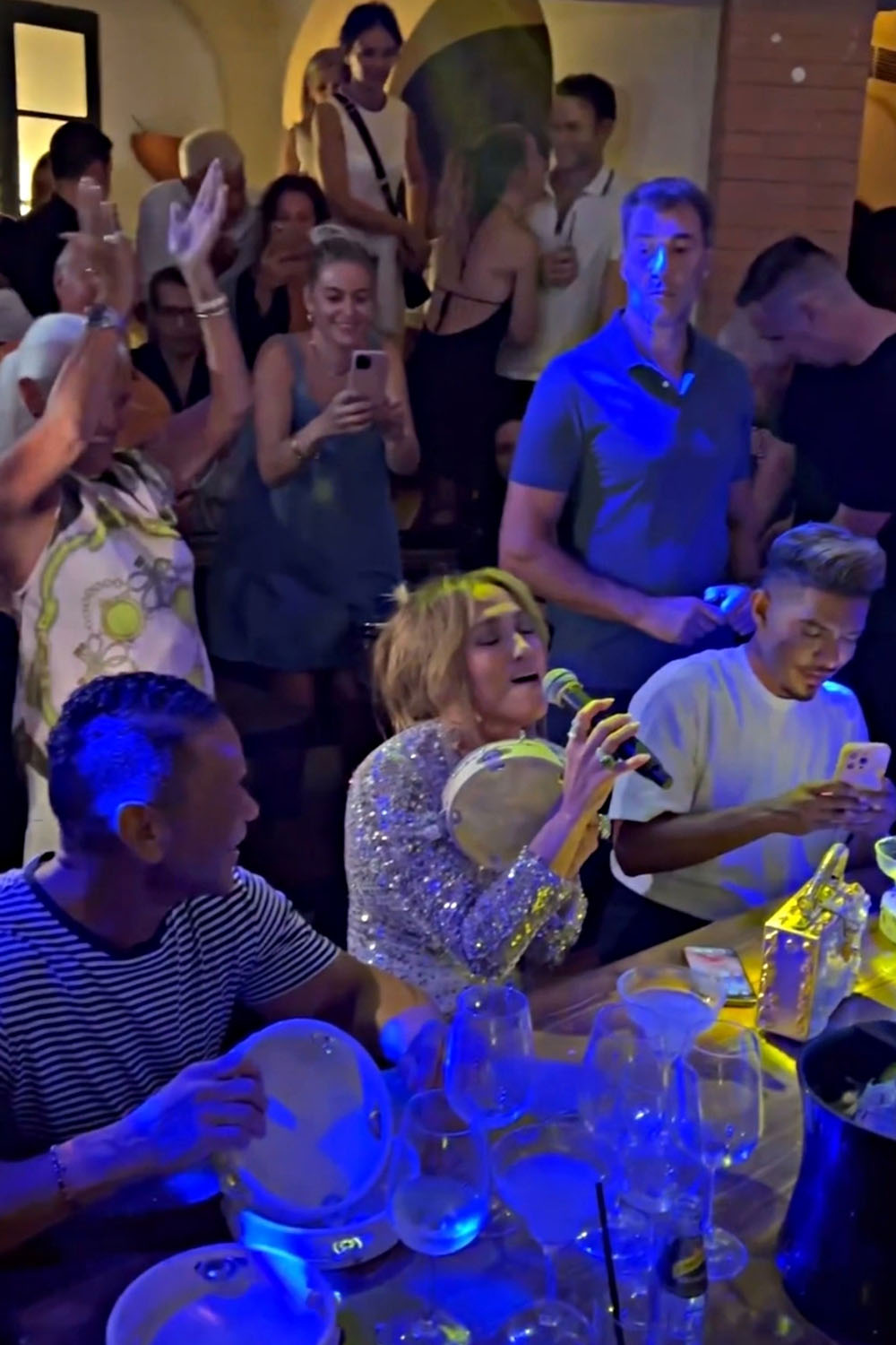 Jennifer Lopez was still in Italy this weekend and was seen partying in Capri on Saturday with her entourage. At one point she started performing and I’m not sure if it was planned or impromptu but I also don’t think it matters. Just know that she was at the Anema e Core taverna and the music came on and she hopped on the mic…because an entertainer is always entertaining!