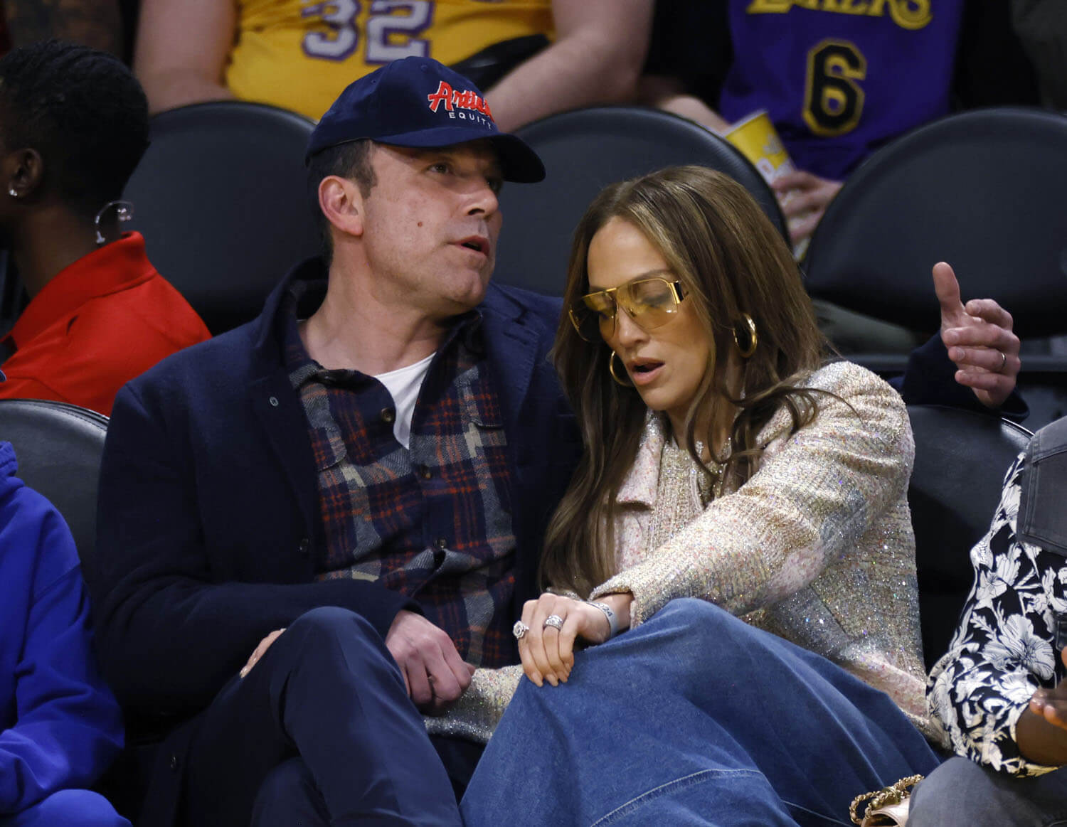 Here she is, with Ben Affleck, courtside at the Lakers game yesterday. She wore her hair straight over a white cropped tee and an amazing pair of jeans that I need to ID. Check her out cheering on the Laker girls.