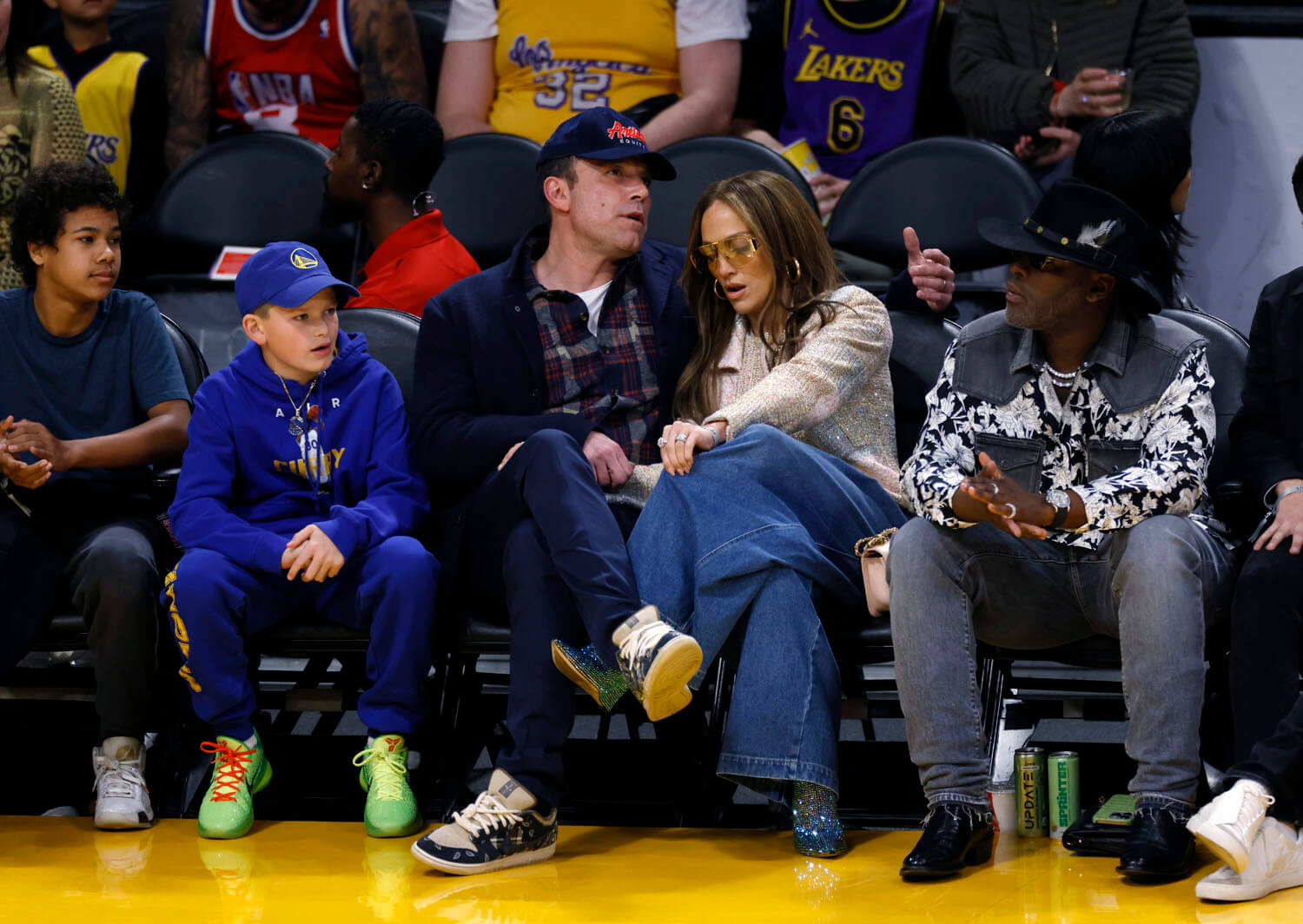 Here she is, with Ben Affleck, courtside at the Lakers game yesterday. She wore her hair straight over a white cropped tee and an amazing pair of jeans that I need to ID. Check her out cheering on the Laker girls.