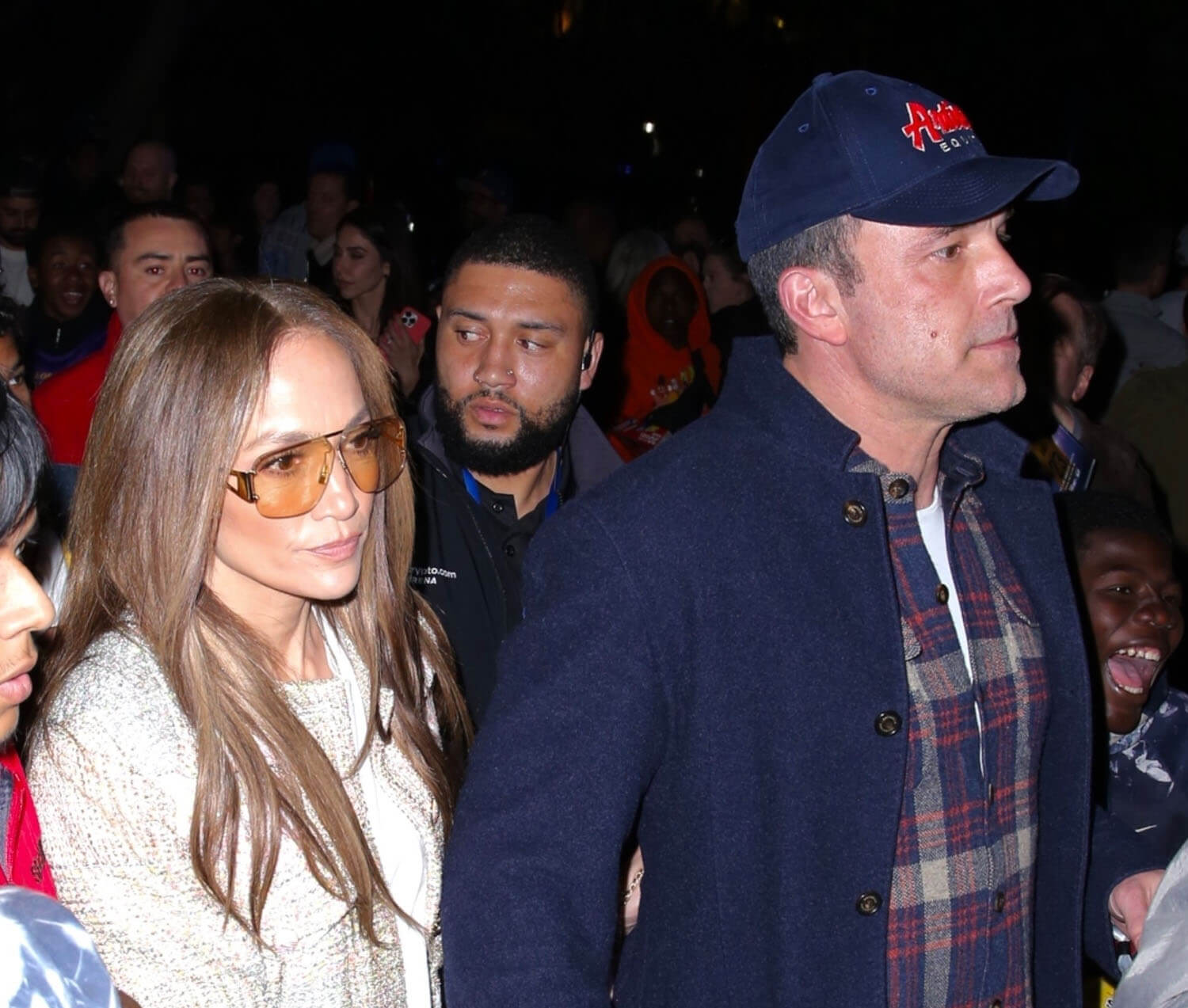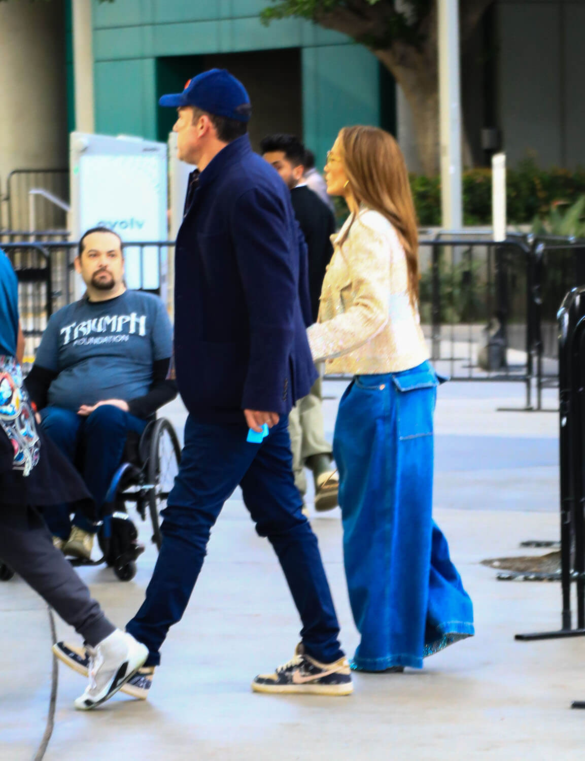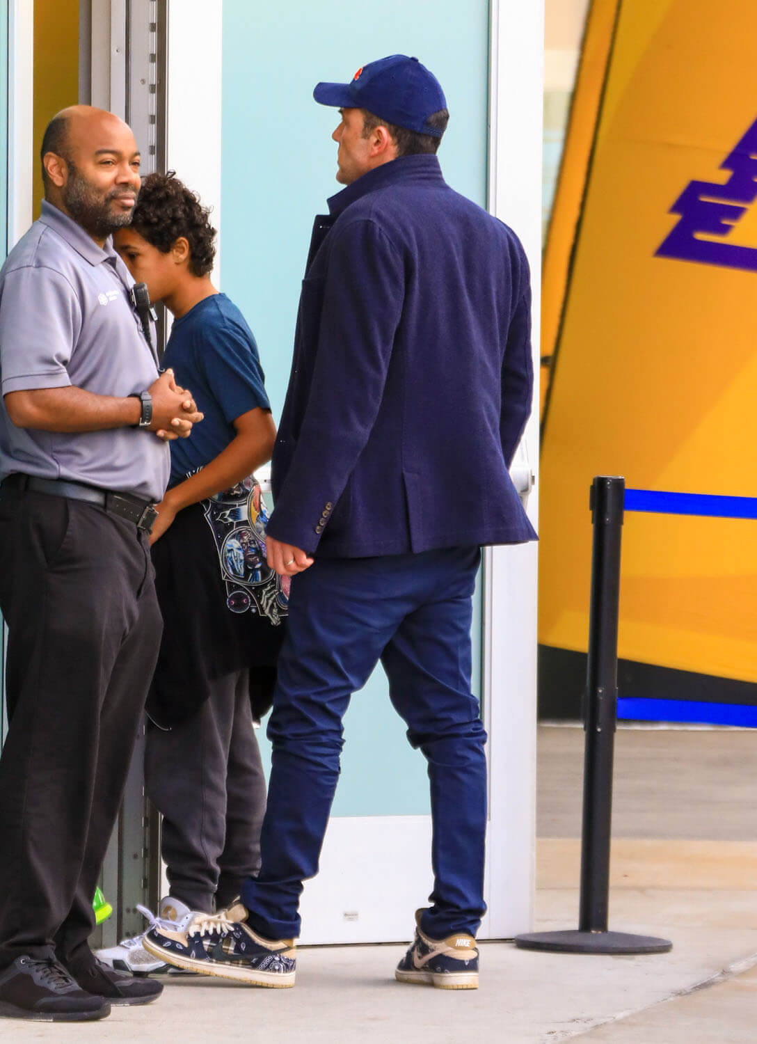 And here’s a shot of her and Ben waiting for his son Samuel and his friend before heading into the arena.
