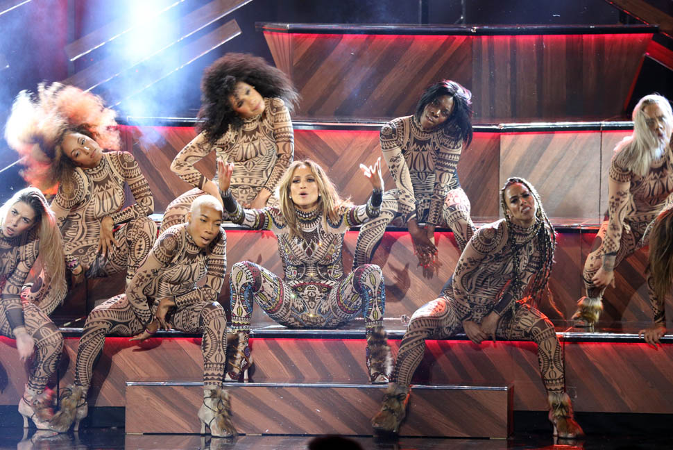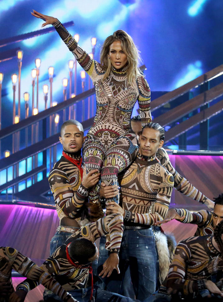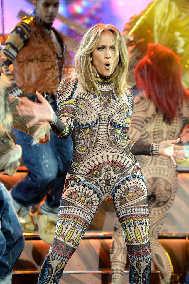 Jennifer Lopez hosted the American Music Awards last night and opened with a medley of the year’s biggest hits. She gave it everything. She hit every move. She was a machine. She was the Entertainer. It was an awesome display of all of her performance skills.