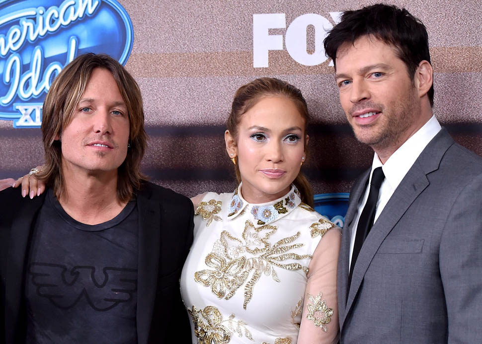 Jennifer Lopez, Keith Urban, Harry Connick Jr, and Ryan Seacrest were at the American Idol finalists’ party yesterday. People keep talking about the show’s declining ratings but they’re still averaging 10+ million a week. I don’t think that’s an emergency. And that doesn’t mean I’m advocating for its continued existence either. I’m just saying it still must be making someone some money somewhere.
