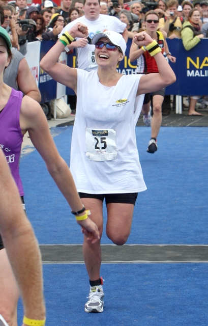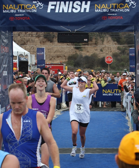 She backed out of Project Runway citing a foot injury on Friday but managed to complete the Nautica Malibu Triathlon in just under 2 and a half hours on Sunday…