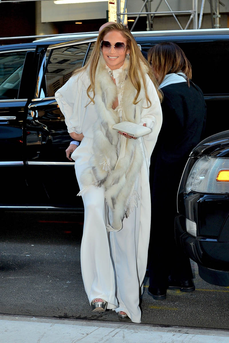 Jennifer Lopez in a rom-com is my favourite Jennifer Lopez. JLo on a press tour also always delivers. She’s a great interview and her style and beauty game is infuriatingly on point. This white winter fur ensemble? It’s STUPID how good she looks. This look was for a taping of Watch What Happens Live. She also did Fallon, Ellen, and all the other major outlets. She’s pushing Second Act hard, as she should. She showed up to Good Morning America with her mom in a sparkly jumpsuit I want for my friend’s New Year’s Eve wedding. It’s a GREAT look but my favourite may be grey pinstriped suit she wore for press at NBC. Seriously, how is this woman aging backwards?