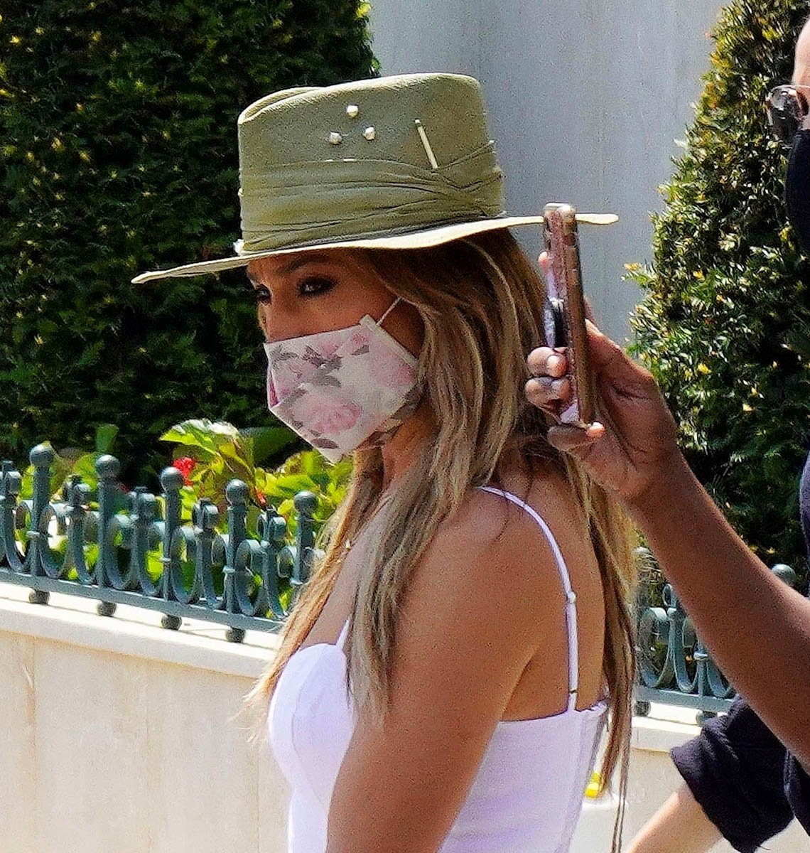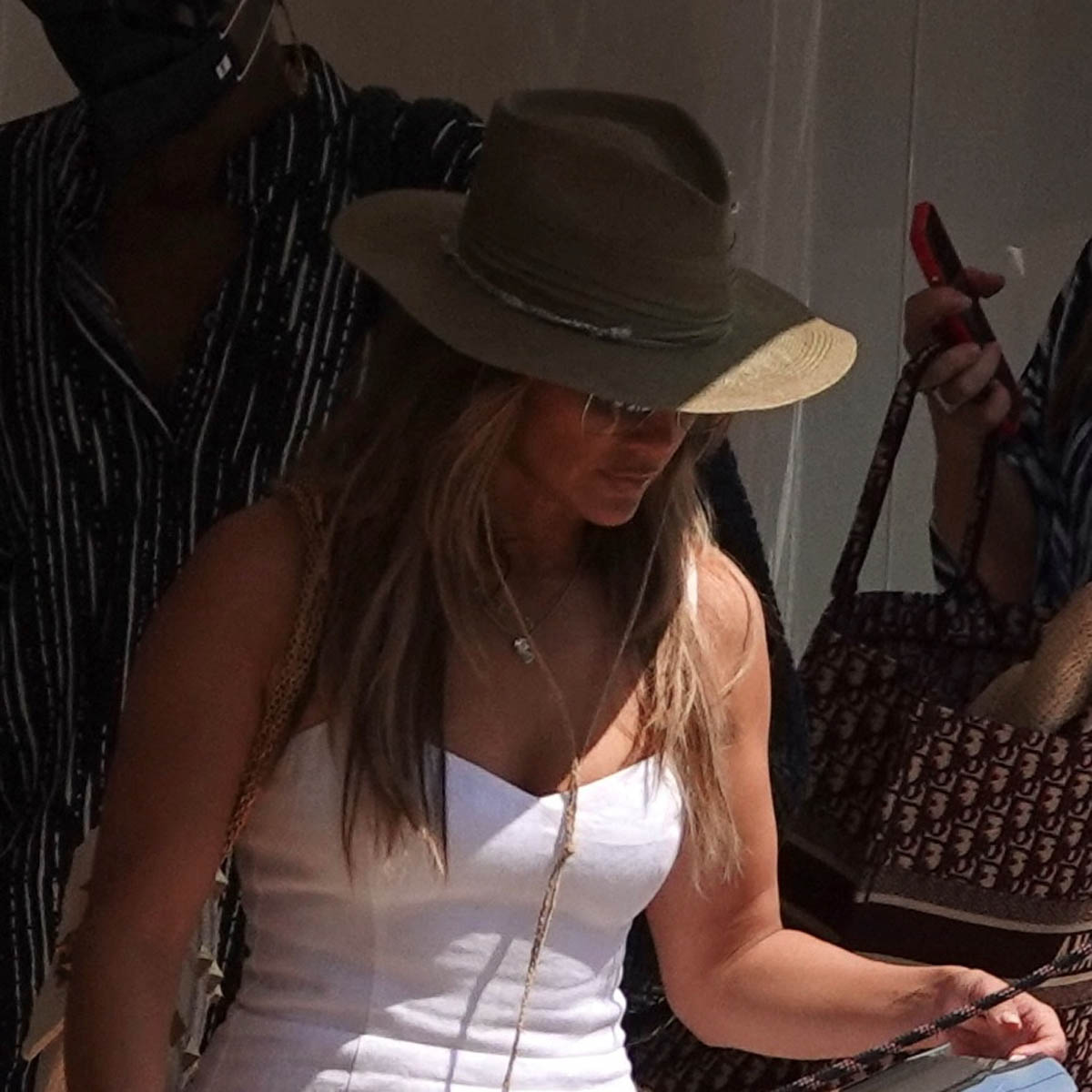 This is JLo out shopping in Monte Carlo yesterday in a really cute outfit, she looks great in that hat, although that’s not the accessory people are talking about. The necklace is what people are talking about – and as you can see here in this shot, she has Ben’s name spelled out. She’s wearing his name.