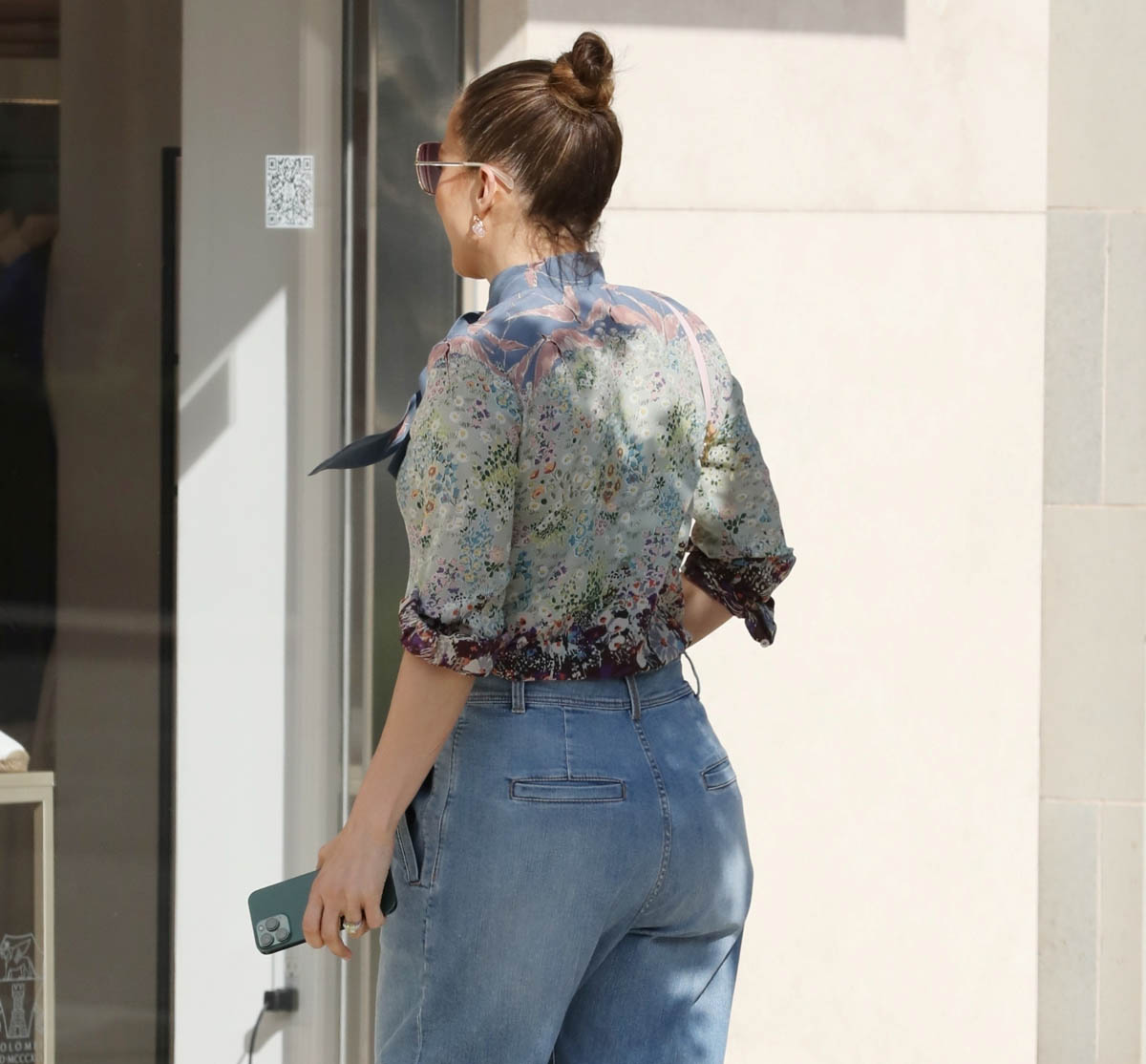 Here she is then on her downtime yesterday shopping on Rodeo drive in a Valentino blouse (from a few seasons ago) and a pair of GREAT jeans, I love them. Pure 80s, yes, with the pleats and that wide fit through the hips tapering to the angle and then rolled up. If you’re in the market for a new pair of jeans and a new jeans cut, this fit is suuuuper comfortable.