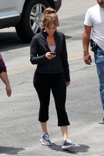 It’s JLo on the set of The Back-up Plan today in work out gear to accentuate all her lovely curves.