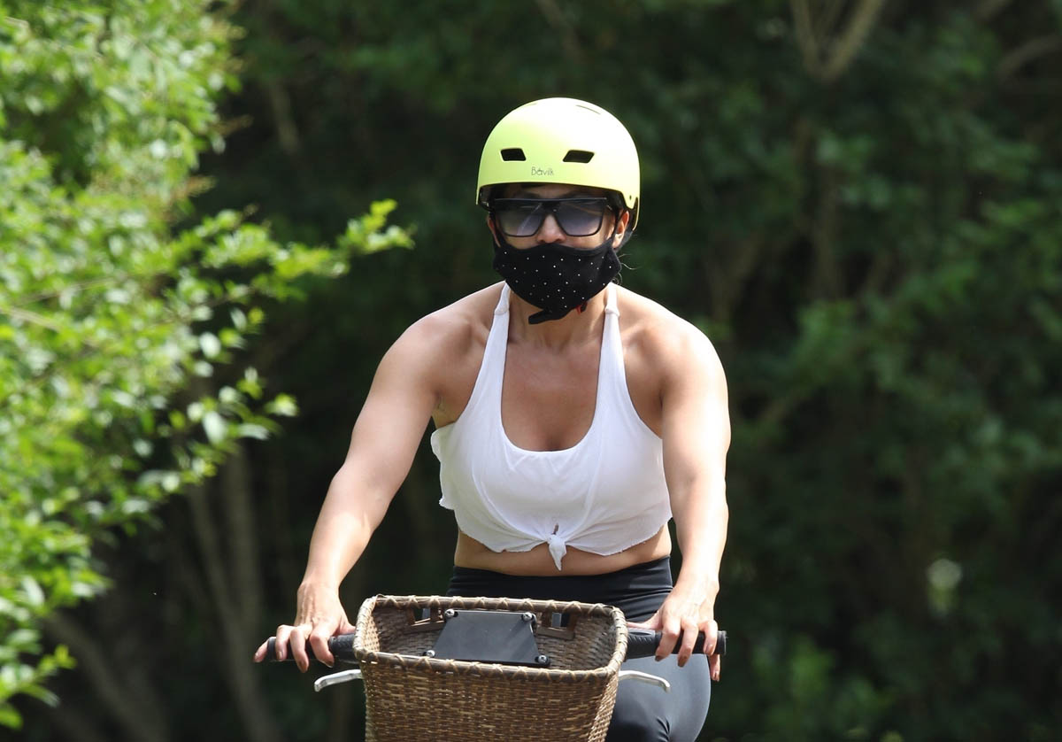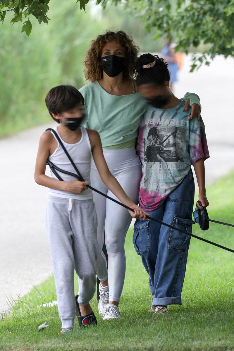 Over the last few months, JLo and Alex Rodriguez (whose birthday is on Monday) have spent time in Miami and LA and the Hamptons, where they are now. She went on a bike ride yesterday and was seen with the kids earlier this week, her hair about as undone as we’ve ever seen it – not that it doesn’t look good, of course it looks good. It’s just not the JLo people see every week right now on World of Dance. Nobody has time for extensions right now, not even her. That said, I love her hair like this because I’ll never say no to a double bun. Yes, you can be 51 and still do it, why the f-ck not?