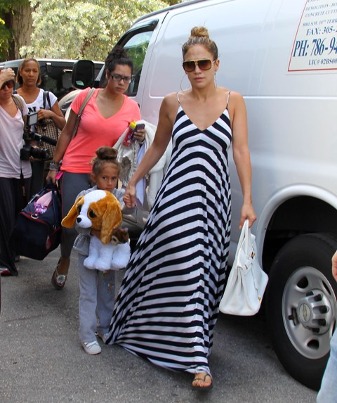 When I saw these pictures, this awesome maxi dress seemed really familiar. I thought maybe I’d seen her in it before. Pretty sure it’s the ALC that she wore, also in Miami, three years ago, holding hands with Marc Anthony. I’m not the only one who associates their clothes with people/memories, right? I have this black skirt I wore with Jacek to our first Christmas party that I will now only wear when he’s around. But I wonder, for celebrities, who have so much more clothing, and wear them so infrequently, if their clothing attachments are different. Which could mean that I might be better at remembering what JLo wore and with whom and what that meant more than she does. You don’t have to tell me how sad that is. I know.