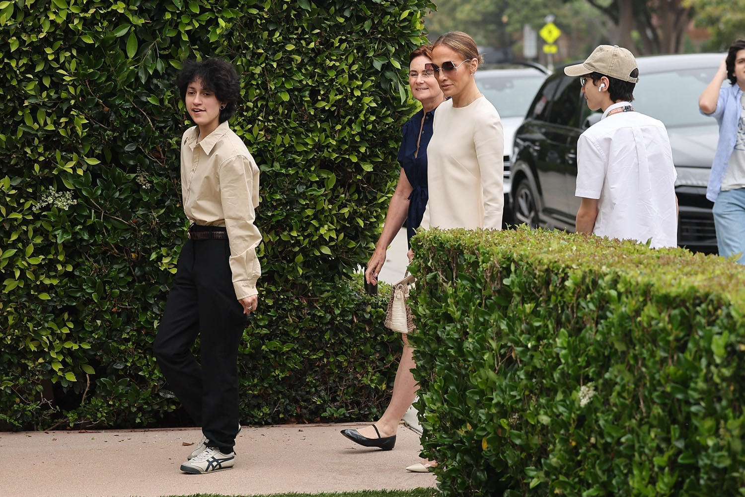 A couple of weeks ago, when Ben Affleck and Jennifer Garner’s oldest child, Violet, graduated high school, I posted about how if there’s any news about his marriage with Jennifer Lopez, they’d be considerate of the school year and their children’s schedules. To that point, yesterday the whole crew was together for Ben’s son Samuel’s school event, as JLo attended with her two children, Max and Emme, joining Ben and Jennifer Garner for a united, blended family gathering.