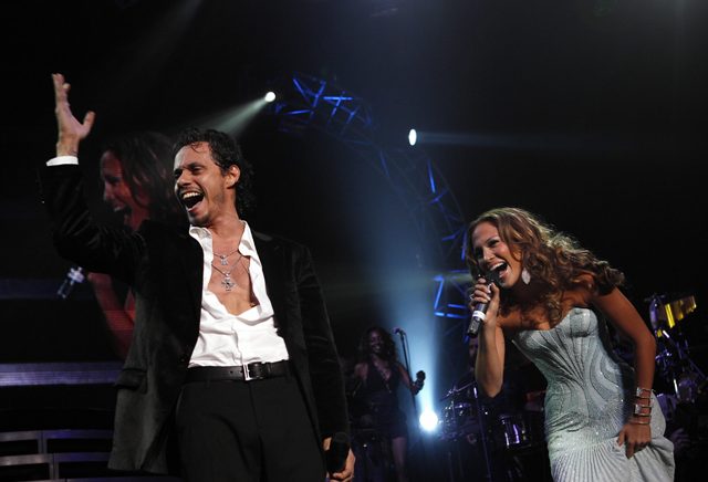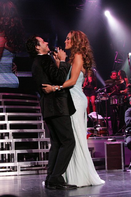 Would you believe the Miss America gown is the least of our problems? Why is it that the biggest stars always stumble on beauty pageant frocks? More importantly though, if she HAD to wear something like this, why not just go up a size? Why jam it all into something so mini and create rolls where there are no rolls? Obviously, La Lopez is not a large woman. In fact, it is perhaps one of the biggest misconceptions about her, that just because she"s got that crazy butt, it means she"s rockin" crazy all over, which couldn"t be further from the truth. Jennifer Lopez is tiny everywhere but ass. But even the tiniest woman, when squeezed into something too small, can manage to look not so small, as you can see from the front and the back of this dress, with her chesty flesh and her backy flesh unceremoniously deserted with no place to tuck. And while this is ok for Mimi, it is most certainly NOT ok for Jenny. But isn"t it great to see her so infectiously happy? Even if her husband still looks infectiously diseased? Classic yin yang, I suppose. And perhaps that"s why - don"t shoot me - I actually think they"ll last.