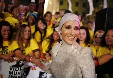 Woah woah! Hear me out, let me explain. In a sea of girls 15 years younger, La Lopez had to pull a grande dame move. She presented the final award of the evening, the most coveted award handed out by the elder stateswomen on the scene… it was pressure to be dramatic. And JLo does drama good. However, I say “Just Miss” because while I think that the wrap and the mini dress and the boots were a great idea, it is the material that killed the ensemble. The material and that festering blister she decided to marry. But since I’m pro-love for Marc these days, we won’t go there, ok? Back to the material –total suckage. Do you remember playing with Barbie? I played dress-up Barbie a little while ago. We gave it to our niece for her birthday and then we had to babysit all three of my brother-in-law’s kids, the longest afternoon of my life, and she brought her Barbie and to my surprise it comes with, like, 5 outfits and all of them are made outta this cheesy fabric, with Velcro attached at the seams so you can mix and match the purple and the silver bits, and there’s shoes and bags and hats and other accessories too. Sorry, I digress. The point is Jennifer Lopez, she who has her own fashion line, is wearing the same kind of cheap cloth used for mass production of play dolls. And THAT, my fellow gossips, is what tipped the balance. Imagine her wrapped in something more quality, something less sparkly, leather even, anything but this low budget material… call me Cruise, but I think it would have worked. And finally…the real reason why I can’t completely dump on Jennifer Lopez – did you see that look on her face when the random dude rushed the stage at the very end? Jenny from the Block was about to throw down y’all! Now how can you not love the Bronx in the Beauty?