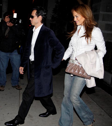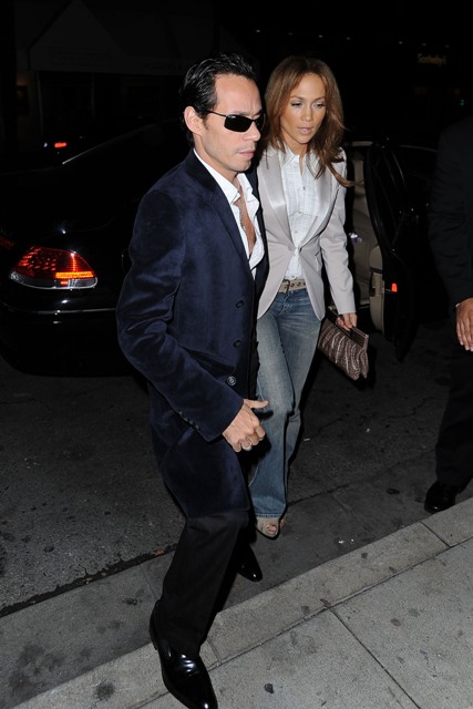 Check out Jennifer Lopez last night out for dinner with Marc Anthony – she was gorgeous last week on the Benjamin Button carpet and it appears the pretty flush has carried over. Eyes are as bright and as tight as we’ve ever seen. And there is a tautness to her face – it’s like we’re suddenly back in the Puff Daddy era.