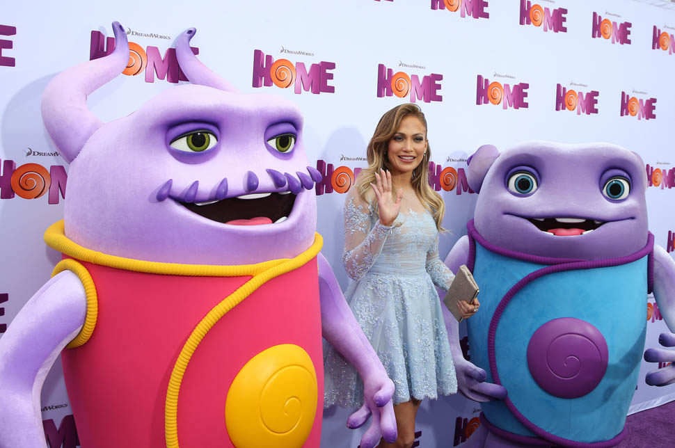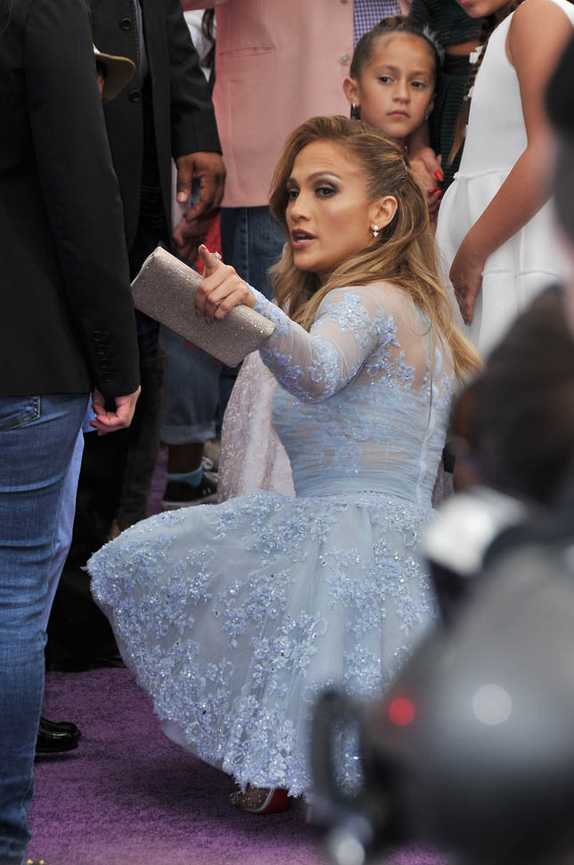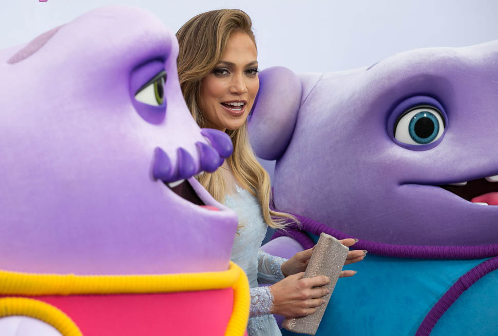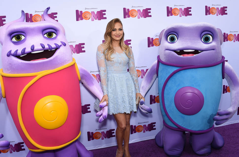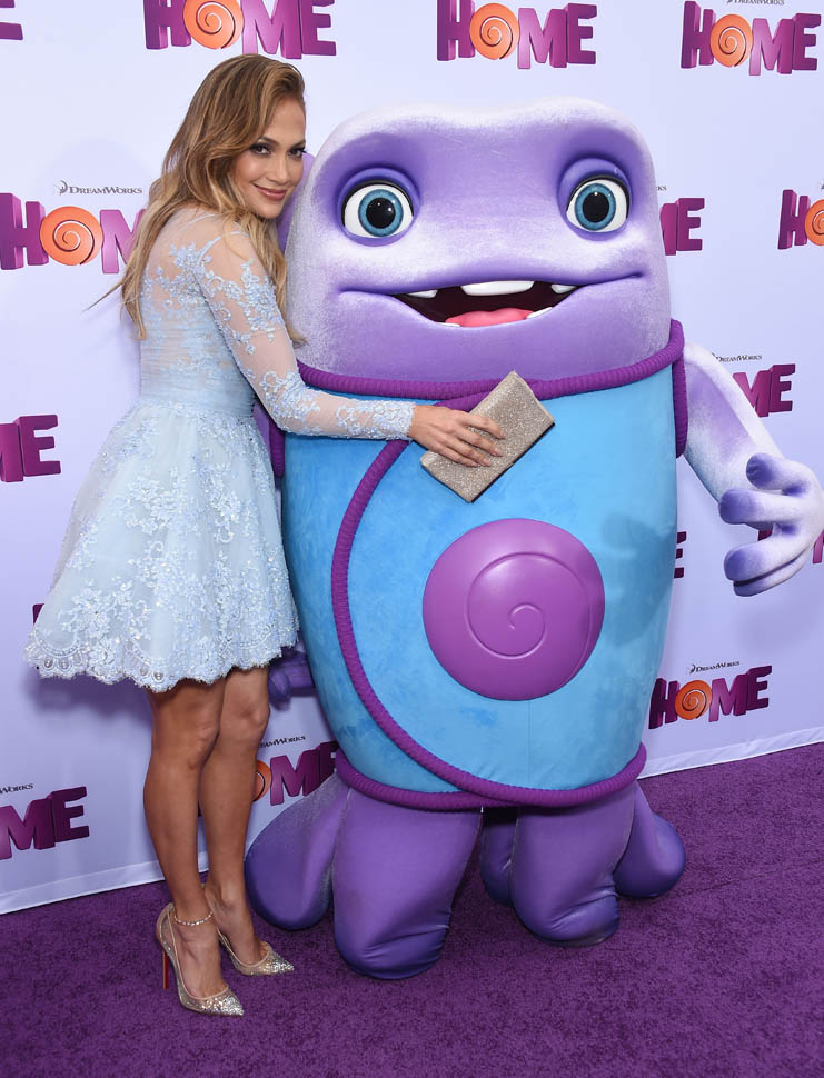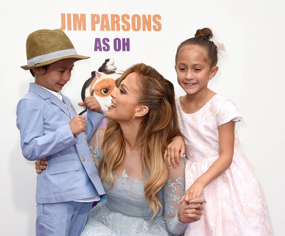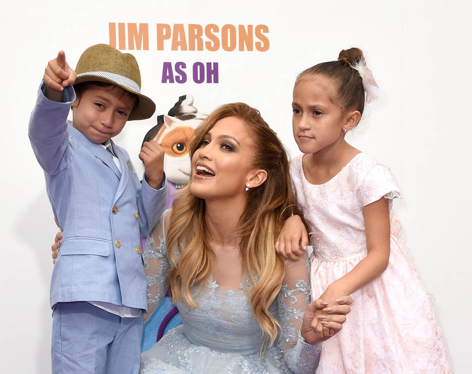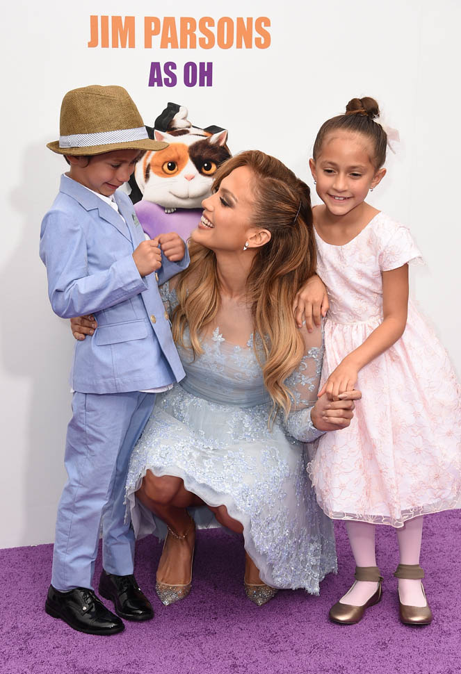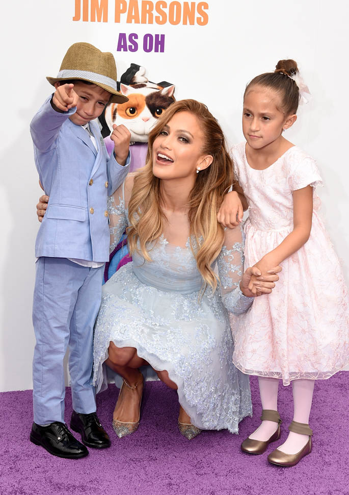 Jennifer Lopez and her kids, Emme and Max, were at the Home premiere in LA yesterday. That’s why she only took it to a level 5 on the hard-posing with the open mouth. You know who else was there?