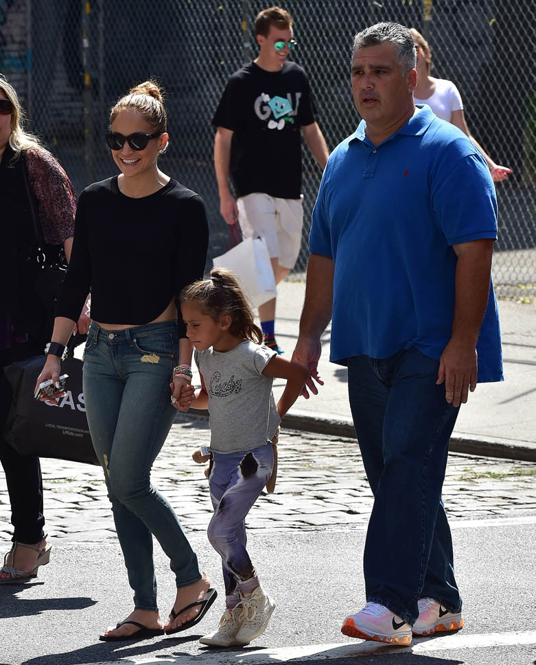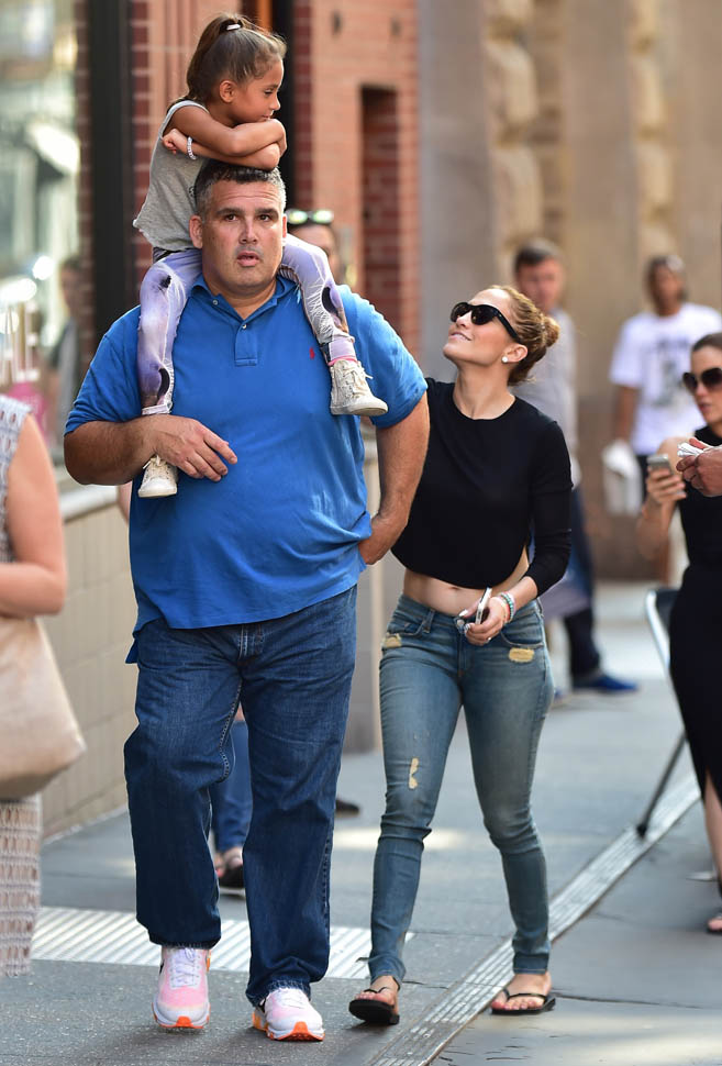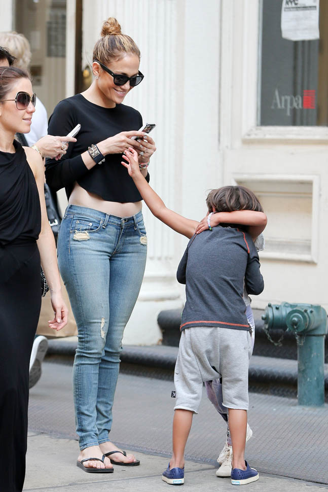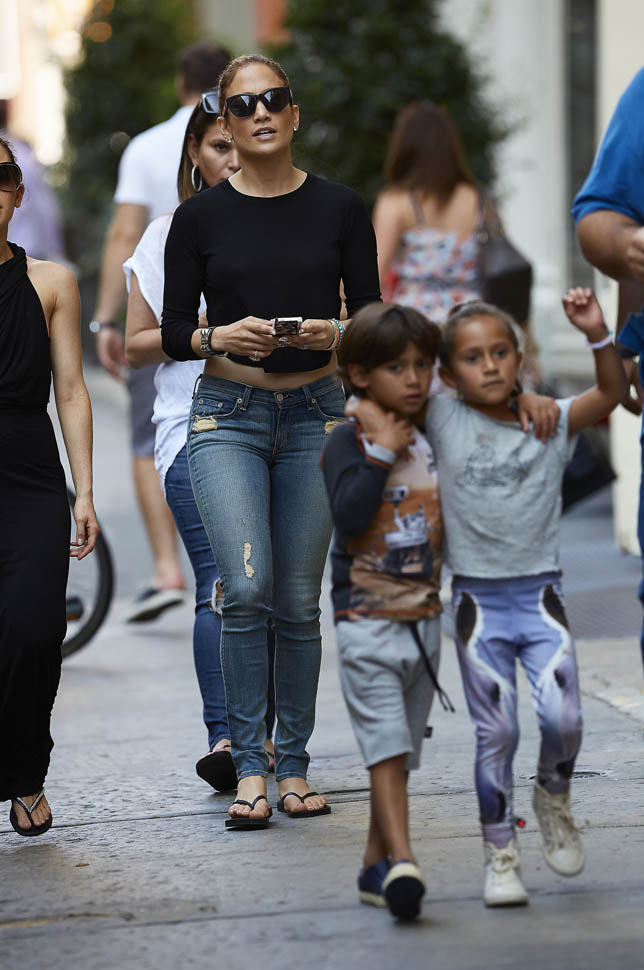 She was in New York yesterday hanging out with her kids and her friends. And wearing the f-cking sh-t out of those jeans under a cropped top. We sit around and talk about this a lot backstage at The Social: Jennifer Lopez has never, ever, ever been better. Like everything. She turns 45 in 3 weeks.