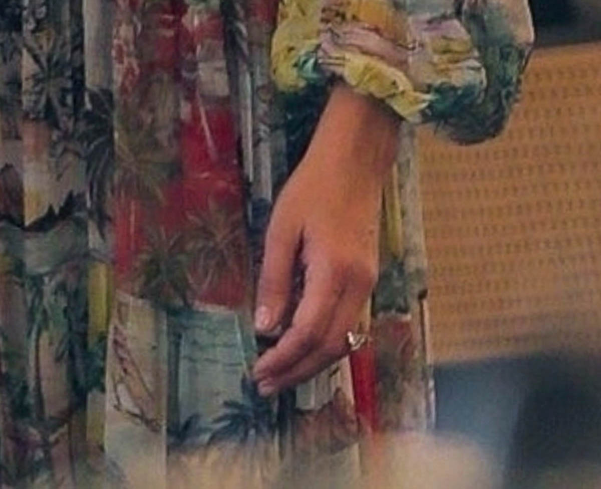 Because there’s another set, and in this set a shot of her left hand, and on that left hand what appears to be a new ring. A large new diamond ring? TMZ points out that she ends up turning it around so that it’s facing her palm once she figures out the paps were shooting her.