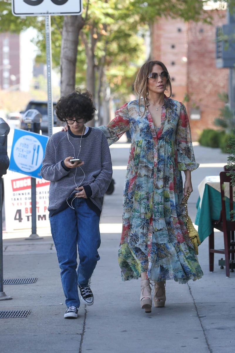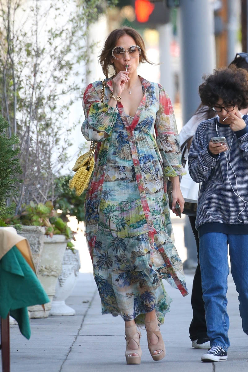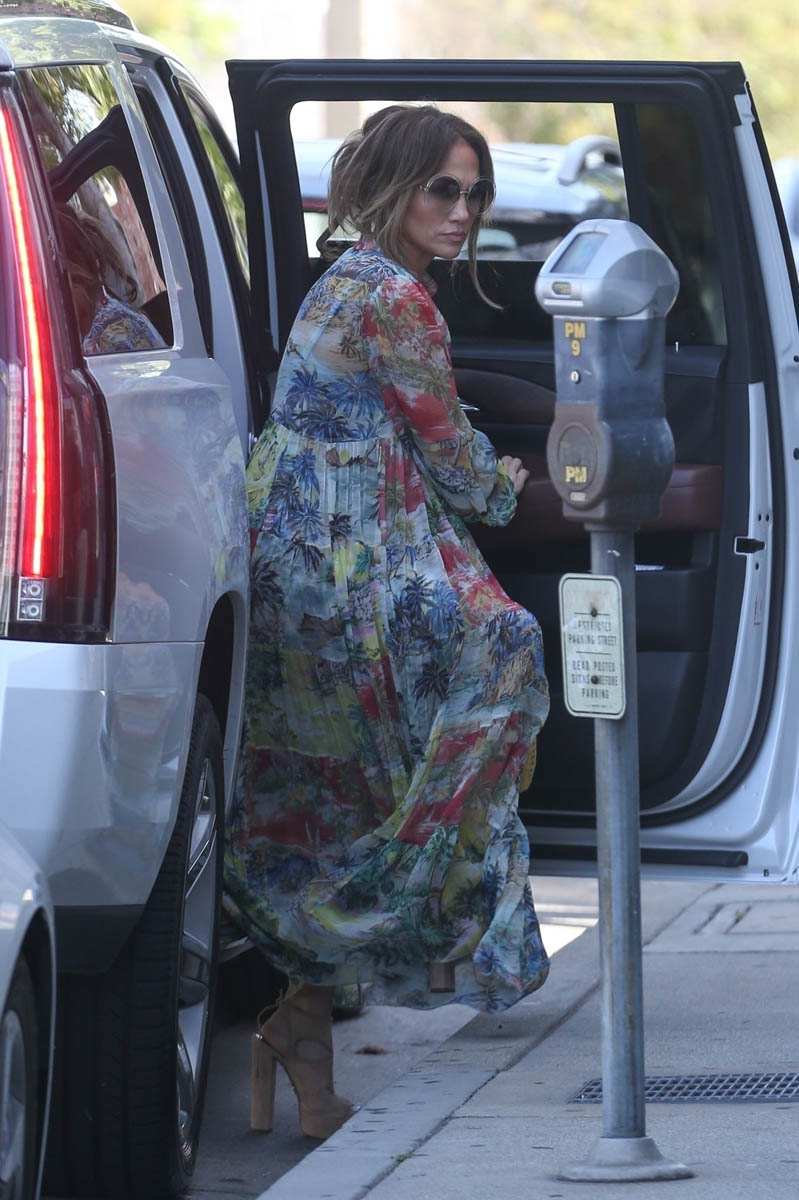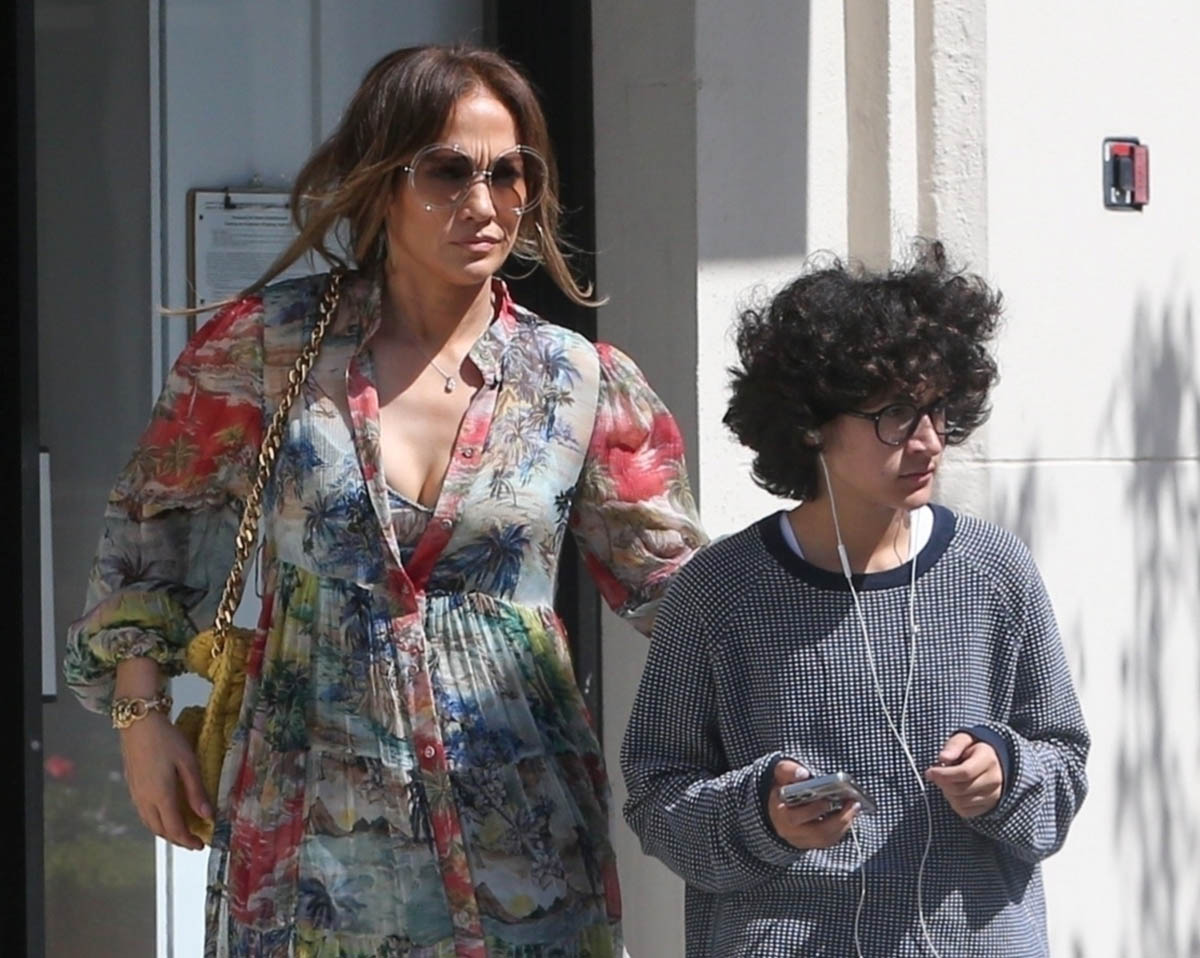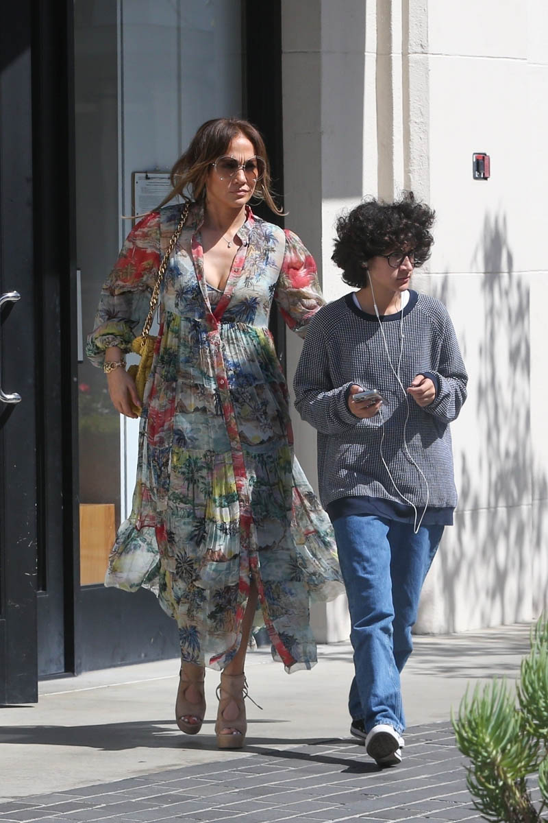 Jennifer Lopez stepped out earlier this week with her daughter Emme. The first set of shots that was released wasn’t all that remarkable – she looks great in a summer dress, classic JLo sunglasses, the hair is pretty undone, by her standards… nothing much to say, which is why I didn’t. Until now.